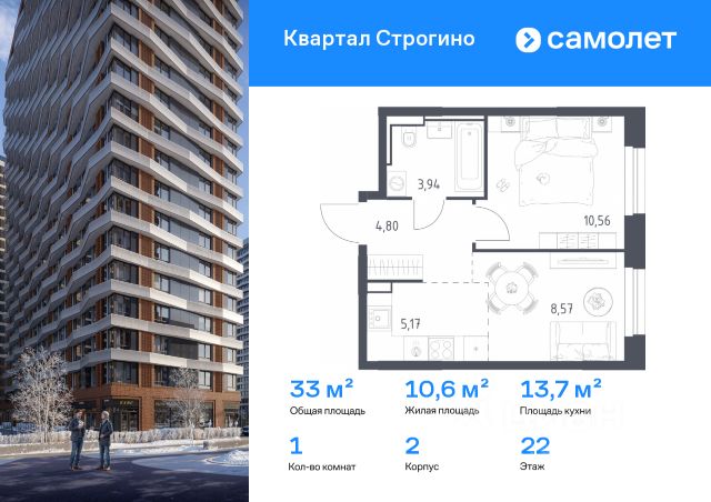 Строим кварталы для жизни с заботой о будущем. Предлагается 1-комнатная квартира комфорт-класса 40,91 кв.м в корпусе 1 на 8 этаже, в ЖК "Квартал Строгино" Квартира с чистовой отделкой. Доступность дополнительных опций уточняйте у застройщика. Приобрести квартиру возможно по специальным акциям от застройщика, с текущими условиями акций можно ознакомиться в блоке "Акций". Цена динамическая и может отличаться, уточняйте актуальность у застройщика. В жилом комплексе "Квартал Строгино" вас ждет широкий выбор досуга. Рядом МКАД и выезд на Новорижское шоссе и станции метро "Строгино" и "Мякинино". В пешей доступности — Живописная бухта, можно доехать до "Липовой Рощи" и "Серебряного бора". На территории комплекса будут 2 детских сада, школа и поликлиника. Двор-парк с площадками, велодорожками и паркингами. В лобби есть помещения для колясок. Квартиры с готовой отделкой и видом на бухту. 1-комнатная квартира с отделкой рядом с метро Строгино.