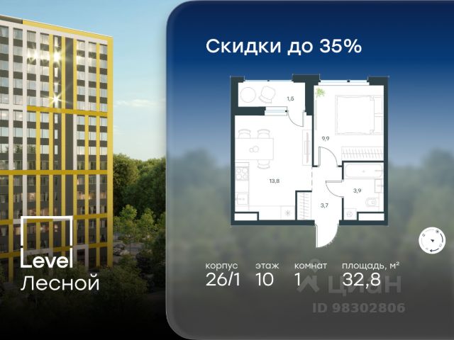 В продаже — однокомнатная квартира с чистовой отделкой, общей площадью 44,73 кв. м. Квартира расположена на втором этаже тринадцатиэтажной секции дома класса Адвансд в новом районе СберСити, который строит Сбер. Дом находится на первой береговой линии Москвы-реки. Дом возводится по технологии монолитного строительства. Отделка фасадов выполнена из природного камня, глазурованной плитки и алюминия. В квартире проведены работы по улучшению шумоизоляции, установлены двухкамерные стеклопакеты с низкоэмиссионными стёклами, минимизирующими теплопотери. Высота потолков — 3 м, в санузлах — тёплый пол. В доме расположены: • уютное лобби, • лапомойка, • общественная терраса, • коворкинг для жителей, • собственная спортивная студия, • колясочная и велосипедная комната на первом этаже, • детская игровая комната, • подземный паркинг. СберСити — это новый жилой и деловой район на западе Москвы, в одном из самых экологически чистых и престижных мест столицы. Это первая в России и крупнейшая в мире инновационная городская среда, созданная по международным стандартам зелёного проектирования. Здесь внедряются решения в области энергоснабжения, вакуумного мусороудаления, тестирования зелёных технологий, а в дальнейшем — системы искусственного интеллекта для управления домами и городской инфраструктурой. Строительство проекта началось в 2021 году, заселение первых корпусов — с лета 2024-го. Общая площадь территории — 461 га, из них более 2,5 млн кв. м жилья и около 833 тыс. кв. м офисных пространств. Будет построено 7 школ, 13 детских садов и 2 поликлиники. В СберСити будут жить 65 тыс. человек и работать 70 тыс. Развитием территории занимается АО "Рублёво-Архангельское", входящее в группу Сбер. СберСити — место, где хочется жить, работать и растить детей. Переезжайте в СберСити! Продается 1-комнатная квартира с отделкой рядом с метро Волоколамская.