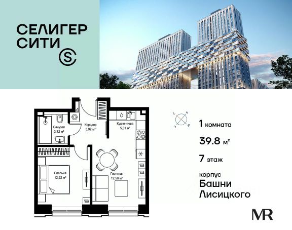 Прямая продажа от застройщика. Продаётся 1-комнатная квартира общей площадью 39.85 м² с предчистовой отделкой в ЖК "Селигер Сити" на 7-м этаже башни Лисицкого. Корпуса четвертой очереди ЖК "Селигер сити" названы в честь трех великих представителей науки и архитектуры, новаторское видение которых — слишком смелое для своего времени — нашло воплощение в уникальных домах жилого комплекса. Вдохновленные авангардными идеями знаменитого советского архитектора Эля Лисицкого, архитекторы создали яркий центр притяжения всего района, задающий новый стандарт жизни в современном мегаполисе — две высокие "Башни Лисицкого" с современной интерпретацией горизонтального небоскреба. Преимущества проекта: - 2 минуты пешком от метро "Селигерская" - Архитектурное решение от голландского бюро MLA + - Одна из самых больших придомовых территорий в Москве - Огороженная охраняемая территория, круглосуточное видеонаблюдение - Европейский подход к благоустройству от бюро Wowhaus: появится парадный бульвар, аллея с фонтаном и арт-объектом, что дополнит уже сформированное благоустройство: детские площадки для разных возрастов, площадки для воркаута, дорожки для бега и пеших прогулок, места для отдыха - Два детских сада, школа начальных классов и центр доп.образования - Искусственный пруд на территории комплекса с благоустроенной набережной и мостом - Продуманная концепция инфраструктуры: уютные кафе и рестораны, супермаркет, магазин фермерских продуктов, бытовые службы, салон красоты, детские сады - Ультрасовременные инженерные решения - Подземный паркинг с зарядными станциями для электромобилей, постами подкачки шин и келлерами - Лобби по индивидуальному дизайн проекту от европейского бюро Вlank Architects: лаунж-зоны, ресепшен, колясочная, помещение для мытья лап животным после прогулки - Надежный девелопер с опытом премиальных проектов MR Расположение комплекса: - 2 минуты от станции метро "Селигерская" - 7 минут на машине до станции метро "Окружная" - Предусмотрен удобный выезд в сторону ТТК (всего 9 км или 15 минут без пробок) - МКАД в 10 минутах на машине Компания MR предлагает своим клиентам специальные условия приобретения квартир в рамках программ ипотечного кредитования от банков-партнеров.