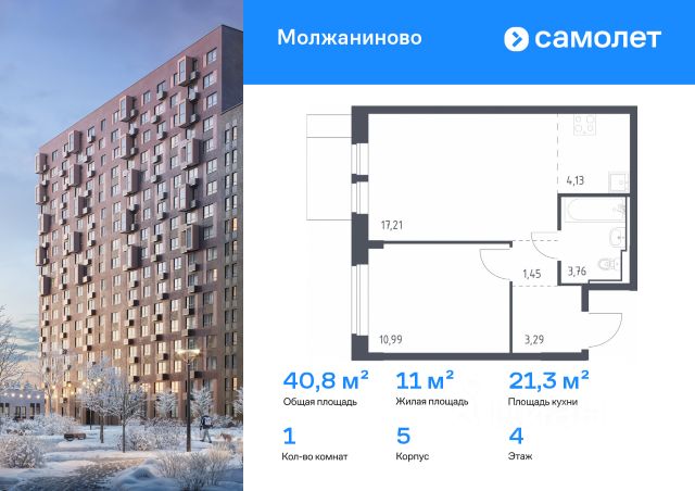 Строим кварталы для жизни с заботой о будущем. Предлагается 1-комнатная квартира комфорт-класса 35,83 кв.м в корпусе 4 на 5 этаже, в ЖК "Молжаниново" Квартира с предчистовой отделкой. Доступность дополнительных опций уточняйте у застройщика. Приобрести квартиру возможно по специальным акциям от застройщика, с текущими условиями акций можно ознакомиться в блоке "Акций". Цена динамическая и может отличаться, уточняйте актуальность у застройщика. Жилой комплекс "Молжаниново" — это место, где каждый маршрут продуман так, чтобы вы проводили больше времени с близкими, а не в дороге. Ставьте паруса в канале имени Москвы, устраивайте пикники в Химкинском лесу или ищите редких птиц в Захарьинской пойме. Жилой комплекс сочетает в себе комфорт городской жизни с преимуществами природы. С одной стороны — московская регистрация, собственная инфраструктура, благоустроенные дворы с детскими площадками и зонами отдыха. С другой — ручей и пруд прямо на территории, а также много леса вокруг. Купить 1-комнатную квартиру с отделкой в районе Молжаниновский в Москве.