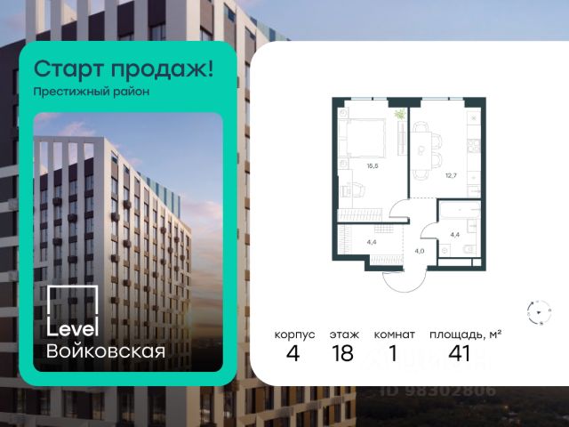 Цена указана с учётом скидки при 100%-й оплате, несубсидированной ипотеке, рассрочке (кроме программы "Рассрочка 0%"). Продается 1-комнатная квартира площадью 40.90 кв. м с отделкой. Квартира находится на 4 этаже 26-этажного корпуса 4, в новом жилом комплексе бизнес-класса Level Войковская, расположенном рядом с живописным заповедником "Покровское-Стрешнево" (застройщик - компания Level Group/Левел групп). Прекрасная транспортная доступность - 7 мин. пешком до станции МЦК "Балтийская"; - 15 мин. пешком до станции метро "Войковская"; - 8 мин. на машине до ТТК; - 15 мин. на машине до центра Москвы; - 20 мин. на машине до Москва-Сити. Продуманный архитектурный проект - стильная архитектура от мастерской Фефелова В. В.; - панорамные виды на парки, Химкинское водохранилище и Останкинскую башню; - лобби с высотой потолков до 6,45 метров; - более 20 видов планировочных решений, включая редкие форматы квартир с террасой и увеличенной высотой потолков до 5,42 метров; - 2 варианта дизайнерской отделки в корпусе 4, предлагаются как дополнительная опция к отделке white box: стиль Modern в светлых холодных тонах и стиль Classic в нейтральной бежевой гамме. Квартиры в корпусах 3 и 5 сдаются без отделки. Расположение Level Войковская строится в престижном Северном округе Москвы. Развитая инфраструктура и живописная природа переплетаются в единый ансамбль, столь значимый для комфортной жизни. Войковский район окружают парки и набережные. В шаговой доступности - парк "Покровское-Стрешнево", не более 15-ти минут на велосипеде занимает путь до Тимирязевского парка и 9-ти минут до парка усадьбы Михалково. Рядом более 60 школ, 75 дошкольных учреждений, 17 государственных и 6 частных вузов, 25 супермаркетов, 4 торговых центра, среди которых ТЦ "Метрополис" и ТЦ "Авиапарк". Внутренняя инфраструктура На территории жилого комплекса предусмотрены коммерческие помещения: кафе, ресторан, пекарня и другие сервисы откроются на первых этажах корпусов. Для жителей будет доступен отапливаемый подземный паркинг на 244 машино-места с доступом с любого этажа на лифте. На территории паркинга будет расположено 125 кладовых помещений для хранения сезонного инвентаря. Лобби и благоустройство Дизайн лобби Level Войковская создан совместно с бюро BLANK. Это уютные гостиные, где хочется задержаться. Теплая цветовая гамма, ресепшен, зоны ожидания, лапомойки и гостевые санузлы - каждая деталь превращает лобби в комфортное продолжение вашего дома. 1,15 га площади в первых двух этапах строительства отведено под приватный внутренний двор, который спроектирован совместно с бюро "Правда". Детские площадки для всех возрастов, спортивные пространства для йоги, воркаута и петанка, уютные зоны для тихого отдыха или работы. Здесь утро начинается с вдохновения, а вечер наполнен приятными моментами. Лифты Комфортное перемещение внутри жилого комплекса будут обеспечивать надёжные лифты с доступом в паркинг с жилых этажей. В каждом корпусе предусмотрено по 3 грузопассажирских лифта. Продается 1-комнатная квартира с отделкой в районе Войковский в Москве.