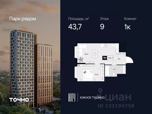 Новогодний марафон скидок! Выгода до 20% в декабре. ЮТУ-камерные небоскребы бизнес-класса с исключительной архитектурой, видовыми квартирами и подходом к большой воде-благоустроенной набережной канала имени Москвы. Проект ЮТУ создает идеальный баланс жизни в городе. Это приватный оазис, где в любой момент можно сменить контекст и выбрать любой из тысячи маршрутов к активному отдыху и ярким впечатлениям. Локация премиум-класса • Первая линии в прибрежной части Химкинского водохранилища • Исключительно тихий и зелёный район Южное Тушино • За 2 минуты можно спуститься к воде, за 10 минут найти зеленые парки и готовую инфраструктуру, за 30 минут доехать до Кремля Концепция проекта • Две футуристичные башни, соединенные торговой галереей от бюро ATRIUM • 60 неповторяющихся планировок: квартиры с угловым "плавным" панорамным остеклением, мастер-спальнями и гостиными до 39м² и просто очень большие квартиры площадью до 128,6 м² • Беспрецедентная коллекция видов-в проекте 80 % видовых квартир Чувство эксклюзивности • Своя приватная жилая экосистема -только для резидентов домов • Лаунж-терраса на крыше • Пространство скрыто от посторонних глаз-с трех сторон его окружают строения проекта Прогрессивные технологии • 3-уровневая система безопасности (Face ID, BLE-метки, видеонаблюдение) • Умный паркинг с распознаванием номеров Проект федерального девелопера ТОЧНО-из ТОП-3 застройщиков России. Компания в проекте реализует ответственный подход к развитию пространств для благополучной жизни человека. И что в ЮТУ особенное воплощение приобретает концепция человекоцентричности, как заметная грань девелопмента ТОЧНО. Продается 1-комнатная квартира с отделкой в районе Южное Тушино в Москве.