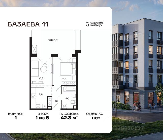 Продается квартира в ЖК "Базаева, 11" с 1 спальней на 5 этаже 5 этажного дома. Общая площадь: 36.3 кв.м. Высота потолков 2.72 м. Срок сдачи 2 квартал 2027 г. Эскроу-счет. Застройщик ГК "Садовое кольцо". -Расположение Жилой комплекс в экологически чистом районе Московской области городском округе Шаховская. Камерное пятиэтажное здание находится в пешей доступности от всей необходимой инфраструктуры. Автостанция Шаховская расположена в 10 минутах от дома. Всего в 11 минутах ходьбы находится ж/д станция Шаховская, откуда удобно добраться электричкой до Рижского вокзала. Дорога до МКАД займет 1,5 часа на автомобиле. -Инфраструктура Проект расположен рядом с современным теннисным центром и Дворцом торжеств. В шаговой доступности — детская школа искусств, Шаховская гимназия, школа 1 и три детских сада. Всего за 3 минуты от дома можно дойти до Городского парка — здесь вас ждут аттракционы, верёвочный городок, тюбинговая горка и ресторан. Парк соседствует с живописным сквером у реки, украшенным подвесными мостами, ротондой и фонтанами. -Внутренний двор На территории проекта появится огороженная детская площадка, рассчитанная на детей всех возрастов, — с песочницей, канатным комплексом и зоной для игр. Для любителей активного образа жизни будет обустроена спортивная площадка с теннисным столом, турниками, тренажёрами и гимнастическими брусьями. Для автовладельцев на территории проекта предусмотрена удобная плоскостная парковка на 81 машино-место. -Архитектура Монохромное здание оформлено декоративным кирпичом и штукатуркой в тёплых светло-серых и насыщенных серых тонах. Эстетику фасада подчёркивают террасные ограждения и корзины для кондиционеров, выдержанные в единой цветовой гамме. -Входная группа Входные группы спроектированы на уровне земли — без ступеней и перепадов. Такой подход обеспечивает комфортный доступ в подъезд с коляской, чемоданом или велосипедом и подчеркивает продуманную архитектуру дома.