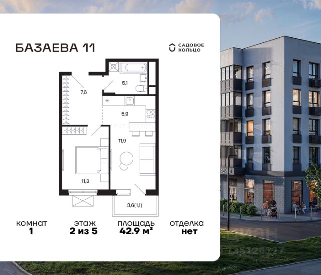Продается квартира в ЖК "Базаева, 11" с 1 спальней на 5 этаже 5 этажного дома. Общая площадь: 36.3 кв.м. Высота потолков 2.72 м. Срок сдачи 2 квартал 2027 г. Эскроу-счет. Застройщик ГК "Садовое кольцо". -Расположение Жилой комплекс в экологически чистом районе Московской области городском округе Шаховская. Камерное пятиэтажное здание находится в пешей доступности от всей необходимой инфраструктуры. Автостанция Шаховская расположена в 10 минутах от дома. Всего в 11 минутах ходьбы находится ж/д станция Шаховская, откуда удобно добраться электричкой до Рижского вокзала. Дорога до МКАД займет 1,5 часа на автомобиле. -Инфраструктура Проект расположен рядом с современным теннисным центром и Дворцом торжеств. В шаговой доступности — детская школа искусств, Шаховская гимназия, школа 1 и три детских сада. Всего за 3 минуты от дома можно дойти до Городского парка — здесь вас ждут аттракционы, верёвочный городок, тюбинговая горка и ресторан. Парк соседствует с живописным сквером у реки, украшенным подвесными мостами, ротондой и фонтанами. -Внутренний двор На территории проекта появится огороженная детская площадка, рассчитанная на детей всех возрастов, — с песочницей, канатным комплексом и зоной для игр. Для любителей активного образа жизни будет обустроена спортивная площадка с теннисным столом, турниками, тренажёрами и гимнастическими брусьями. Для автовладельцев на территории проекта предусмотрена удобная плоскостная парковка на 81 машино-место. -Архитектура Монохромное здание оформлено декоративным кирпичом и штукатуркой в тёплых светло-серых и насыщенных серых тонах. Эстетику фасада подчёркивают террасные ограждения и корзины для кондиционеров, выдержанные в единой цветовой гамме. -Входная группа Входные группы спроектированы на уровне земли — без ступеней и перепадов. Такой подход обеспечивает комфортный доступ в подъезд с коляской, чемоданом или велосипедом и подчеркивает продуманную архитектуру дома.