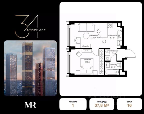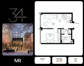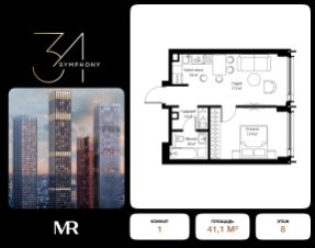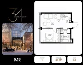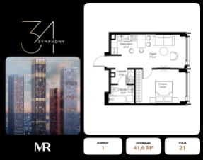 Дом сдан. Ключи в день покупки! В продаже 1-комнатная квартира площадью 41 м² с предчистовой отделкой на 10 этаже 49 этажного дома в корпусе Кристал. ЖК Симфония 34 - концептуально новый жилой комплекс премиум-класса с подземной парковкой, состоит из четырех башен высотой 36 - 54 этажа. Квартиры сдаются с базовой (предчистовой) отделкой MR BASE или дизайнерской чистовой отделкой MR READY. Высота потолков 3 - 6 метров, окна высотой до 2,6 м. Более 100 кладовых в подземной части ЖК и более 500 на этажах. Безопасность - Система контроля входа на территорию комплекса, биометрия - Система автоматического водяного пожаротушения и противопожарного водопровода, система пожарной вентиляции - Доступ на парковку при помощи системы распознавания автомобильных номеров, карточка для контроля доступа резидентов - Система видеонаблюдения - Круглосуточная связь через приложение, телефон, голосовые сообщения с охраной, консьержем, call-центр. Расположение Пешком - 6 минут до метро "Дмитровская" - 15 минут до Тимирязевского парка На машине - 5 минут до Савеловского вокзала и Аэроэкспресса в Шереметьево - 10 минут до Москва-Сити и Садового кольца Благоустройство - 70% территории отведены под зеленые насаждения и ландшафтный дизайн - Приватный Японский сад - Детские площадки с зонированием по возрасту - Clubhouse для резидентов - Wellness & SPA - Зона для пикника, зона с гамаками - Центральное лобби, ресторан, коммерческие помещения - Дополнительный вход/выход на территорию комплекса Окружение - В 10 минутах от Symphony 34 находится дизайн-завод Flacon, где регулярно проходят культурно-образовательные и развлекательные мероприятия - Тимирязевский парк расположен в 850 м. Площадь парка 232 га - Рядом расположен парк "Дубки", площадью 16,5 га. - В 15 минутах расположен Хлебозавод 9. Здесь находятся шоурумы брендов, кафе разных кухонь мира, образовательные проекты и площадки для мероприятиКомпания MR предлагает своим клиентам специальные условия приобретения квартир в рамках программ ипотечного кредитования от банков-партнеров.