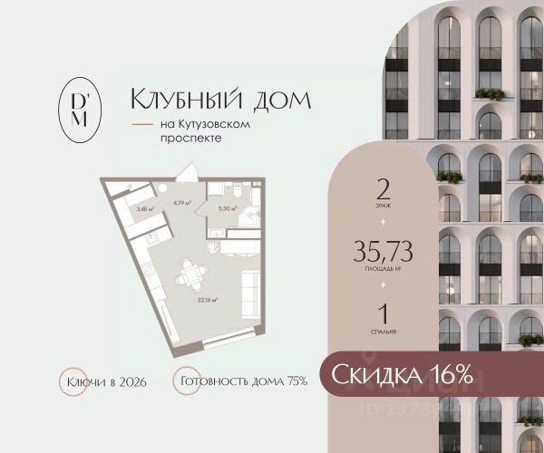 Продается 1-комнатная квартира, в корпусе 8.2 общей площадью 78,9 кв.м. на 2 этаже. Знаковый проект для ценителей комфортной городской среды от Vesper. Квартал площадью 3,7 га расположен на Кутузовском проспекте и воплощает новую концепцию идеально сбалансированного места для жизни. Благодаря удачному расположению и развитой транспортной инфраструктуре отсюда одинаково быстро добираться как до Кремля и ММДЦ "Москва-Сити", так и до Рублево-Успенского шоссе. Планировочные решения проекта Vesper Кутузовский включают широкую линейку жилых форматов и подойдут для самых взыскательных резидентов: помимо базовых вариантов квартир доступны эксклюзивные лоты — пентхаусы с террасами и квартиры с патио. Продуманная приватная инфраструктура, собственный ландшафтный парк, близость магазинов и ресторанов делают Vesper Кутузовский достойным выбором для самых взыскательных клиентов: как для тех, кто любит уединение, так и для резидентов, которые стремятся быть в центре событий. Концепция жилого квартала разработана ODA Architecture. Разная высотность 10 строений, плавные линии и главный паттерн из арок, размер которых меняется в зависимости от дома и этажа, создают визуальный ритм квартала и делают его легким и элегантным, наполненным солнечным светом и воздухом. Продам 1-комнатную квартиру первичка в районе Дорогомилово в Москве.