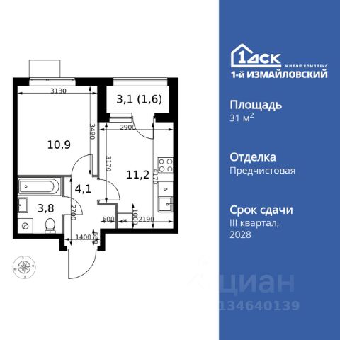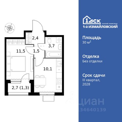 Прямая продажа от застройщика! Жилой Комплекс Комфорт класса. Продаётся 1-к квартира номер 1137 общей площадью 30.5 кв.м. на 25-м этаже 25 этажного здания. Без отделки. Цена с учётом скидки. Особенности квартиры: - Просторная спальня, в которой можно разместить большую кровать. - Линейная планировка - максимальная функциональность и удобство. - Место для игры/занятия спортом - идеальное пространство для активных детей. - Увеличенная высота потолков - ощущение простора и легкости. - Можно оборудовать рабочее место - комфорт для работы и учёбы. - Линейная кухня - функциональность и практичность в одном решении. - Ниша под шкаф - компактное и удобное место для вещей. - Лоджия - уютное место для отдыха и тишины. - Панорамное остекление лоджии - открывает вид на окружающий мир. Информация о комплексе: Современный архитектурный проект "1-й Измайловский" - идеальное место для проживания, расположенное в восточной части Москвы в окружении 14 000 гектаров леса. Комплекс пронизан атмосферой здорового образа жизни и благополучия. Сиреневый сад и близлежащие лесопарки - это места, где можно насладиться лыжными прогулками зимой и тонизирующими пробежками летом. Расположенный между Щелковским шоссе и Амурской улицей, "1-й Измайловский" осмысляет себя не столько через близость к городским точкам притяжения, сколько через соседство с зелеными пространствами и спортивными объектами. Он отгорожен от шоссе застройкой первой линии и собственными садами здоровья. В его окнах - изумрудное море парка "Лосиный остров" и густые кроны окрестных дворов. В его графике - занятия спортом и прогулки в Измайлове. Транспортная доступность: Не более 2,5 км до станций метро "Щёлковская" и "Черкизовская" и МЦК "Локомотив". Щёлковское шоссе соединяет квартал с Северо-восточной хордой и МКАД, Центральным автовокзалом и Восточным железнодорожным вокзалом. Две автобусные остановки в паре минут ходьбы и 11 маршрутов общественного транспорта. На автомобиле 3 минуты до СВХ 12 минут до ТТК 15 минут до Садового кольца Внутренняя инфраструктура: Комплекс находится в исторически сложившемся районе Москвы с хорошим качеством и плотностью инфраструктуры. Торговые центры и сетевые магазины -6 детских садов, включая собственный детский сад на 125 мест -3 школы, включая собственную школу -Поликлиники и медицинские центры -Парки и зоны отдыха Расположение архитектурного проекта создает все условия для тех, кто стремится к здоровому образу жизни и для тех, кто уже сделал выбор в его пользу. В ближайшем окружении расположены несколько стадионов и множество спортивных объектов для занятий спортом на любой вкус: от всеми любимого футбола, баскетбола и до конного спорта. В окружении проекта более 30 километров организованных беговых и велодорожек. Купить 1-комнатную квартиру первичка в районе Гольяново в Москве.