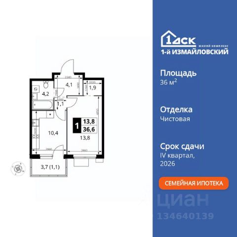 Прямая продажа от застройщика! Жилой Комплекс Комфорт класса. Продаётся 1-к квартира номер 471 общей площадью 36.3 кв.м. на 5-м этаже 32 этажного здания. Без отделки. Особенности квартиры: - Организуем показ в удобное для вас время! - Мастер-зона с гардеробной. Просторное место для отдыха и удобного хранения вещей. - Линейная планировка - максимальная функциональность и удобство. - Гибкая планировка - создайте пространство по своему вкусу. - Место для игры/занятия спортом - идеальное пространство для активных детей. - Можно оборудовать рабочее место - комфорт для работы и учёбы. - Гардеробная - удобство для хранения и организации вещей. - Ниша под шкаф - компактное и удобное место для вещей. - Лоджия - уютное место для отдыха и тишины. Квартира без отделки. Чистый холст для воплощения интерьера вашей мечты. Информация о комплексе: ЖК "1-й Измайловский" в восточной части Москвы: идеальное место для жизни в окружении 14 000 гектаров леса. Наслаждайтесь лыжными прогулками зимой и пробежками летом в сиреневом саду и лесопарках. Комплекс отгорожен от шоссе застройкой первой линии и садами здоровья. Из окон открываются виды на парк "Лосиный остров" и зеленые дворы. Близость к природе и спортивным объектам создаёт атмосферу здорового образа жизни. Транспортная доступность: Не более 2,5 км до станций метро "Щёлковская" и "Черкизовская" и МЦК "Локомотив". Щёлковское шоссе соединяет квартал с Северо-восточной хордой и МКАД, Центральным автовокзалом и Восточным железнодорожным вокзалом. Две автобусные остановки в паре минут ходьбы и 11 маршрутов общественного транспорта. На автомобиле 3 минуты до СВХ 12 минут до ТТК 15 минут до Садового кольца Внутренняя инфраструктура: ЖК расположен в историческом районе Москвы с развитой инфраструктурой. В шаговой доступности: 6 детских садов (включая собственный на 125 мест), 3 школы, поликлиники, торговые центры и парки. Проект создан для здорового образа жизни: рядом стадионы, спортивные объекты для футбола, баскетбола и конного спорта, а также более 30 км беговых и велодорожек. Всё для активной жизни в окружении зелени и современной инфраструктуры. Квартира без отделки - чистый холст для вашего интерьера. Купить 1-комнатную квартиру первичка в районе Гольяново в Москве.