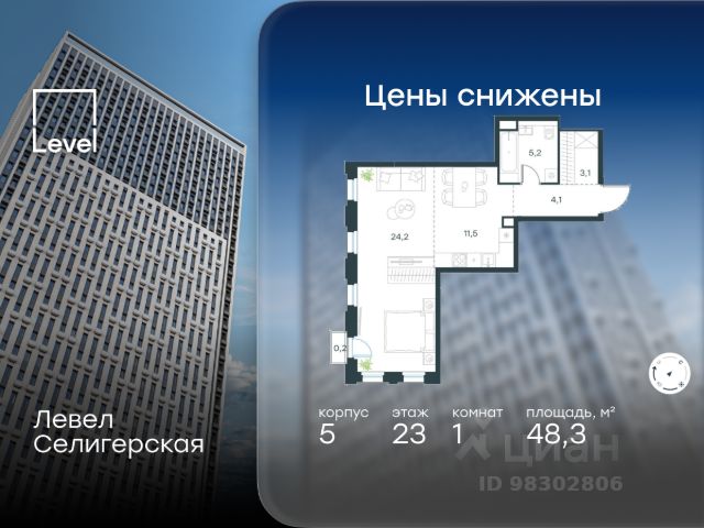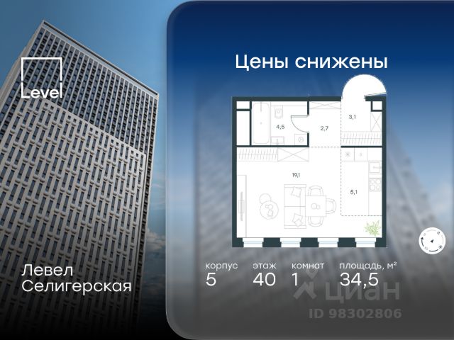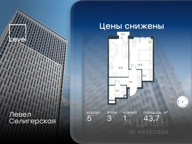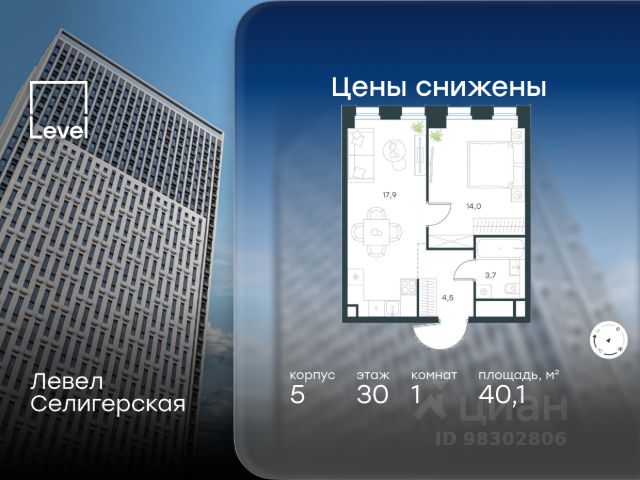 Продается 1-комн. кв-ра площадью 40.37 кв.м на 11 этаже 11 этажного монолитного дома в ЖК "ДМИТРОВСКОЕ НЕБО" от Группа ЛСР. "Дмитровское небо" —жилой квартал бизнес-класса в Северном административном округе в районе Западное Дегунино. Находится среди парков и водоемов, вблизи всей необходимой для современной жизни инфраструктуры. Особенностью проекта является благоустроенный сквер площадью 1.5 га. В шаговой доступности от "Дмитровского неба" находятся станции метро "Верхние Лихоборы" и "Селигерская" Люблинско-Дмитровской линии. Кроме этого, за несколько минут можно доехать до станций МЦД "Дегунино" и МЦК "Лихоборы". Удачное расположение проекта смогут оценить и автомобилисты, ведь рядом — удобное Дмитровское шоссе, которое обеспечивает комфортные выезды на МКАД и ТТК. Также рядом расположена Северо-Восточная хорда — скоростная магистраль, связывающая север Москвы с востоком и юго-востоком. Между корпусами первой очереди строительства появится сквер-парк, площадь которого составит 1,5 гектара. Его ландшафтный дизайн разработан ведущими урбанистами столицы. Продам 1-комнатную квартиру первичка на проезде Ильменский в Москве.