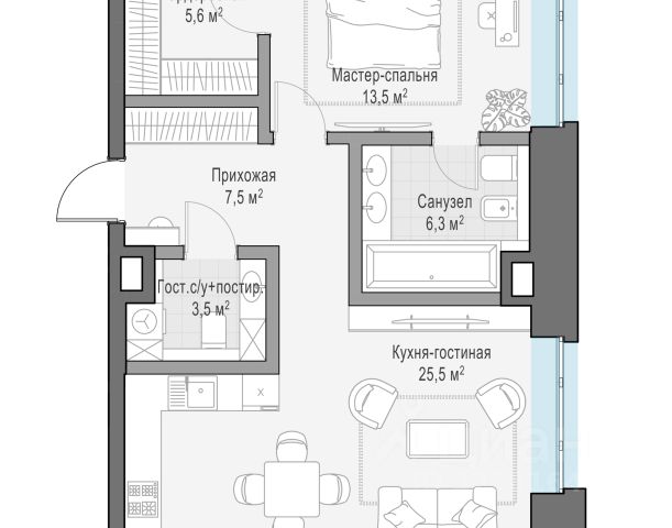 1-комнатная квартира общей площадью 78.34 м² в фамильном доме LUCE, расположенная на 3 этаже 7-этажного дома. LUCE — клубный дом в самом сердце исторической Москвы, в охранной зоне Кремля. Уникальный фамильный дом предлагает 43 квартиры, площадью от 79 до 384 м², спроектированные для тех, кто ценит приватность, пространство и изысканность. Дизайн и архитектура Архитектурная концепция клубного дома LUCE была разработана в известном итальянском бюро Archea Associati, основанном Марко Казамонти во Флоренции в 1988 году. Каждая деталь в LUCE продумана до мелочей, чтобы обеспечить резидентам максимальный комфорт и эстетическое удовольствие. Центральное гранд-лобби с потолками высотой 9 м — просторное помещение, объединяющее три входные группы, западное лобби с музыкальной гостиной и восточное с библиотекой. Благоустройство и инфраструктура Главное сокровище LUCE — секретный сад. Тихие тропинки вьются между тенистыми пространствами, создавая множество уютных уголков для отдыха и размышлений. Прогулка по тенистым аллеям сада становится своего рода медитацией, которая помогает восстановить силы и зарядиться энергией на новый день. Не покидая территорию своего дома, резиденты LUCE могут пользоваться эксклюзивными пространствами и сервисами: beauty-кабинет; зал для фитнеса и йоги,детская игровая комната, кабинет для индивидуальных занятий с репетитором, переговорная. Инженерные решения В каждой квартире предусмотрены: индивидуальные системы приточно-вытяжной вентиляции с очисткой воздуха и кондиционирования; система увлажнения воздуха; очистка и умягчение воды; система бесперебойного горячего водоснабжения; система "Умный дом": управление климатом, освещением, шторами, системой защиты от протечек, возможность установки дополнительных сервисов,а также, подогрев террас и балконов. Для всего дома предусмотрено усиление сигнала сотовой связи и wi-fi на территории всего дома, в том числе в саду и паркинге; бесшумные лифты с дизайнерской отделкой; подогрев покрытий входных групп; -вакуумное мусороудаление. Безопасность обеспечивают камеры круглосуточного видеонаблюдения, установленные по всему комплексу здания и на территории, а также автоматическая система распознавания госномера при въезде в паркинг. Паркинг Одноуровневый паркинг имеет увеличенные габариты машиномест. Здесь предусмотрены места для зарядных станций повышенной мощности, благодаря которым электрокар можно зарядить всего за 20 минут.