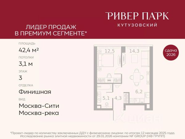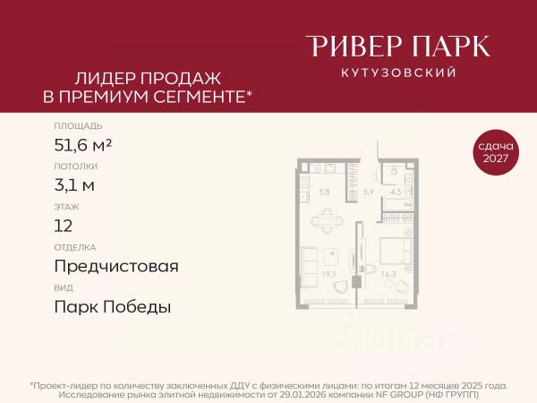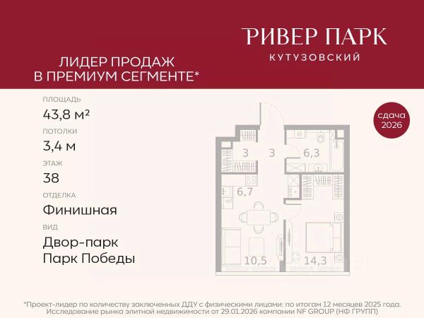 Продается 1-к квартира площадью 44.8 кв.м. на 3-м этаже в жилом комплексе премиум-класса Ривер Парк Кутузовский в Башне Лазурь Премиальный жилой комплекс Ривер Парк Кутузовский строится в одном из самых престижных районов столицы Дорогомилово, на берегу Москвы-реки с лучшими видами на Москва-Сити. Яркий проект в стиле эко-футуризма станет самым масштабным и самым высотным ЖК в локации Кутузовского проспекта. Расположение и Транспортная доступность: • На берегу Москвы-реки, напротив Москва-Сити • 600 метров до Кутузовского проспекта • Удобный съезд с ТТК • Прямой выезд на МКАД по Проспекту Багратиона. • В пешей доступности 3 станции метро: Фили, Парк Победы, Кутузовская, а также станция МЦД Фили. Архитектура от именитого бюро ADM отличается уникальной пластикой фасадов - башни словно парят в воздухе, играя гранями как драгоценные камни. Жилой комплекс состоит из 5-ти небоскребов с приватным парком 2 Га и внешней торговой галереей с открытым доступом. В закрытом внутреннем дворе уникальная по насыщенности клубная инфраструктура только для жителей: • Площадка Мультиспорт (баскетбол, футбол, воллейбол, большой теннис) • Детский игровой клуб Немо • Музыкальная студия • Клуб Гедонист с бильярдной • Студия стиля для стилистов и массажа • Гольф-симулятор • Караоке Впервые в Москве лаунж-зоны на крыше небоскребов, только для жителей: • Всесезонные беседки иглу • Джакузи • Гриль • Площадка для занятий йогой • Самые высоки качели на крыше в России • Видовые площадки Благоустройство комплекса занимает 3 гектара и разработано мировым экспертом по городским парковым ландшафтам - голландским бюро WEST8. Концепция проекта дать жителям отдохнуть от городского ритма и расслабиться среди природы. В Приватном парке уже высажены хвойные деревья-крупномеры сосны и ели. • Зеркальный пруд с арт-объектом • Две детские площадки • Точка спорта с тренажерами и турниками • Цветущий сад • Зеленый театр со сценой и проектором • Видовая зона отдыха с очагом • Солнечная терраса с лежаками На территории жилого комплекса планируется строительство коммерческого образовательного центра, включающего детский сад на 200 мест и школу на 460 мест.
