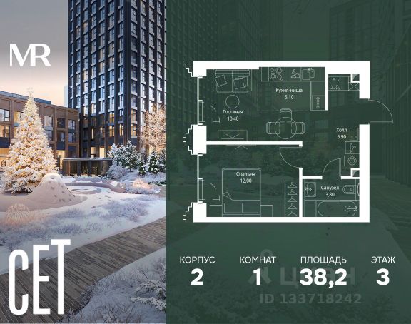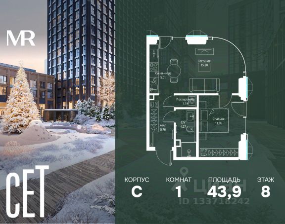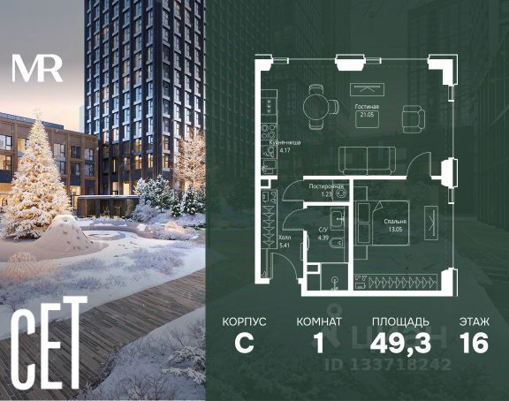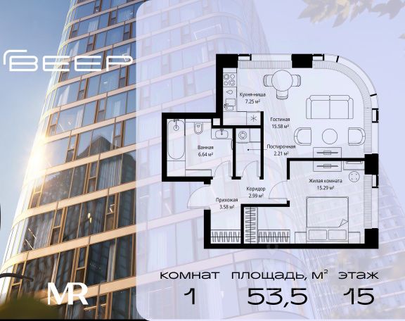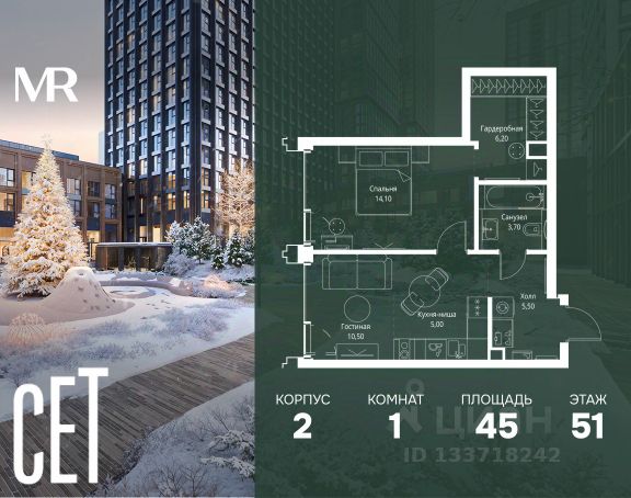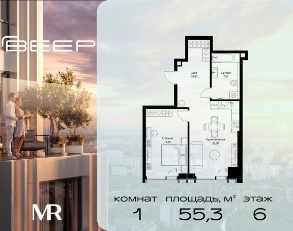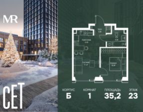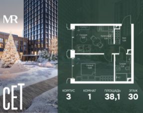 Прямая продажа от застройщика. В ЖК Сет продается 1-комнатная квартира площадью 31.05 м², расположенная в корпусе Б, на 53 этаже 59 этажного дома. Сет имеет стратегически выгодное расположение в ЗАО, в районе с большой историей и блестящим будущим: между природной зоной долины реки Сетунь и Кутузовским проспектом. В рамках возведения первой очереди предусмотрено три корпуса высотой 18, 45 и 59 этажей. На верхних этажах спроектированы общедоступные смотровые площадки с панорамным обзором на центр столицы. Преимущества проекта: • Функциональные планировочные решения • Контроль проникновения через входную дверь • Система управления освещением и температурой в квартире • Система защиты от протечек с функцией перекрытия воды • Вход в подъезд по биометрическим считывателям Face ID • Скоростные лифты • Двухуровневый подземный охраняемый паркинг на 495 машино-мест Застройка Сет включает в себя не только жилые корпуса, но и инфраструктурные объекты. Все необходимое для повседневного комфорта будет расположено в шаговой доступности: • Фитнес-клуб с бассейном • Ведущая городская школа, детский сад и школа искусств • Центр культуры и досуга • Медицинский центр • Кафе и рестораны Расположение комплекса: Пешком: • Метро "Давыдково" - 17 минут • Парк "Долина реки Сетунь" - 3 минуты • Открытие новых станций метро в шаговой доступности в будущем Инфраструктура: Разнообразить свой день резиденты Веер смогут также проводя больше времени на свежем воздухе. Двор разделен на 4 зоны разных эмоций и действий, которые пересечены и соединены веерными прогулочными маршрутами: • Спортивная площадка устроена в глубине ""Кленовой рощи"" • В ""Чайном домике"" будет создан навес с утеплением для отдыха в любую погоду • Площадки для детей воплотятся в ""Волшебный лес"" с цветами, зеркалами и световым дизайном • ""Центральная площадь"" устроена у водного оазиса живописного пруда. На машине: • "Москва-Сити" - 15 минут • Садовое кольцо - 20 минут • ТЦ "Океания" - 8 минут • ТЦ "Времена года" - 13 минут • Сколково - 12 минут • Гребной канал - 17 минут Компания MR предлагает своим клиентам специальные условия приобретения квартир в рамках программ ипотечного кредитования от банков-партнеров. Продам 1-комнатную квартиру первичка в районе Можайский в Москве.