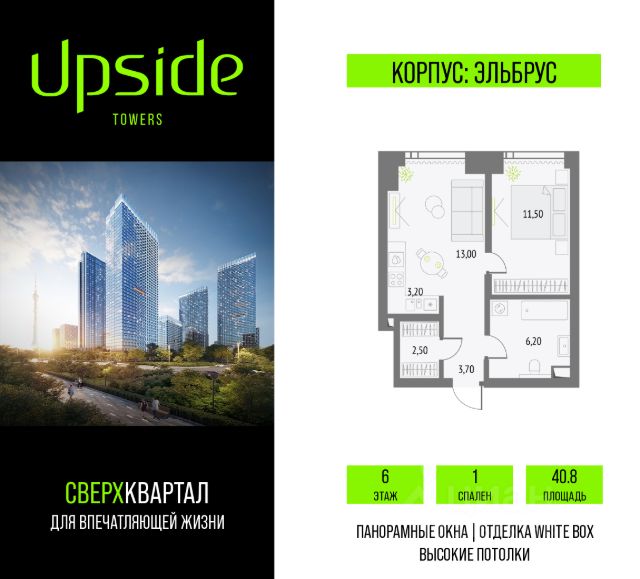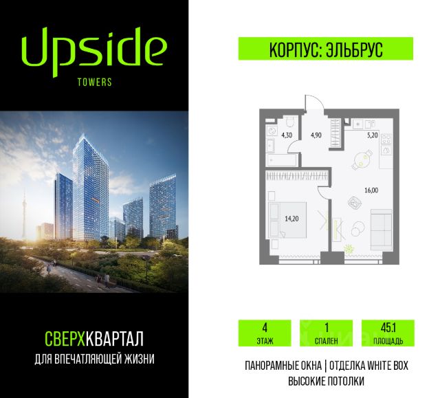 Продаётся 1-комнатная квартира площадью 44.7 кв.м на 26 этаже 47 этажного корпуса Атлас в квартале небоскребов "Upside Towers". В квартире отделка White-box, c видом на корпус Эльбрус, прогулочный бульвар, школу, Ботанический сад, Останкинскую Башню. Номер квартиры Б2606. Upside Towers - технологичный квартал строится в динамично развивающемся Бутырском районе, в 3 мин. от метро, в 5 мин. от ТТК. На территории 7 га возводится 5 высотных башен от 19 до 58 этажей, названных в честь главных вершин земли. Квартиры с панорамными окнами в пол, высокими потолками и современными инженерными решениями. Благоустроенная зеленая территория включает: приватные дворы, природный комплекс, прогулочный бульвар, ландшафтный парк 2,5 га с сенсорным садом и многофункциональными игровыми и спортивными площадками. В корпусе откроются магазины, кафе и рестораны, а также другие объекты коммерческой инфраструктуры. На последнем этаже корпуса предусмотрен SPA Relax центр с панорамным видом на город. Собственники квартир смогут в любое удобное для них время забронировать посещение спа-зоны через смарт-приложение. Дня них будут доступны джакузи, пространства для занятий йогой, а также места для отдыха и релаксации. Большое внимание в проекте уделяется созданию социальной инфраструктуры. Между "Атласом" и "Олимпом" в трехэтажном стилобате разместится уникальное пространство закрытый клуб для жителей квартала Upside Club площадью 2 000 кв. м. Здесь появится каминный зал с роялем, многофункциональная детская зона c двухуровневым игровым оборудованием для малышей и дошкольников, плей-рум для подростков, домашний кинотеатр, коворкинг, переговорные и лектории. На крыше стилобата разместится всесезонная BBQ патио-зона с верандой и закрытыми помещениями для приготовления и отдыха. В башнях откроются смотровые террасы для резидентов с панорамными видами на город, парки, Останкинскую башню, ВДНХ, Ботанический сад и Москва-Сити. Покупая квартиру даже самого минимального размера в Upside Towers, вы получаете в пользование 2 000 м² бесплатных общественных пространств. В рамках проекта строится государственная школа и детский сад, разместится более 15 000 кв.м. коммерческой инфраструктуры. Насыщенная социальная инфраструктура формирует множество сценариев для жизни на территории квартала. В Upside Towers применяются лучшие технологии и практики, чтобы обеспечить высшее качество жизни: Воздух, не уступающий по качеству горному, обеспечит приточно-вытяжная вентиляция. Пятиступенчатая очистка воды с сохранением полезных минералов. Центральное кондиционирование. Внутрипольные конвекторы с естественной конвекцией. Современные системы безопасности и мониторинга микроклимата. Высокоскоростной интернет на всей территории, в квартирах и паркинге за счет усиления GSM-связи всех ведущих операторов. Все места в подземном паркинге оборудованы зарядками для электрокаров. Бутырский район непрерывно развивается и готовится стать новым современным деловым районом Москвы. В рамках программы Продам 1-комнатную квартиру первичка на проезде Огородный в Москве.