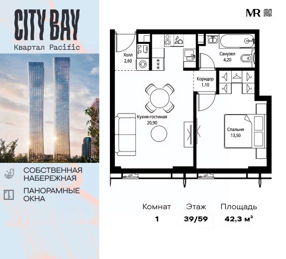 Прямая продажа от застройщика. Продаётся 1-к квартира общей площадью 34 м² без отделки в ЖК City Вау, квартале Pacific, на 20-м этаже 59 этажного дома. Концепция жилого комплекса City Вау - настоящий город в городе с отлично развитой инфраструктурой и собственной благоустроенной набережной. На территории жилого комплекса расположено пять кварталов - Atlantic, Pacific, Indian, North, Cliff. Жилой квартал City Вау отличается оригинальной концепцией и выделяется среди других проектов такими характеристиками как: - Архитектура, - Виды из окон, - Природное окружение, вызывая гордость у жителей и восхищение у прохожих. Вся жизнь района Покровское-Стрешнево строится вокруг водных объектов: - Пойма реки Сходни с уникальной экосистемой, - Речка Химка и Химкинское водохранилище, - Москва-река, - Канал имени Москвы. Кругом вода, и местные с удовольствием этим пользуются. А сразу за рекой - центр водного спорта в Строгино с вейк-парком и яхт-клубами. Помимо воды, здесь очень много зелени: - Рядом Сходненский ковш памятник природы, естественный амфитеатр глубиной 40 метров; - Парк при усадьбе Братцево с фруктовым садом; - Дубовая роща "Маяк", - Алешкинский лес; - Лесопарк Покровское-Стрешнево с пляжами и бобрами. Главные транспортные артерии района: - Волоколамское шоссе, - Таганско-Краснопресненская линия метро и МЦД-2. Всего за 20 минут можно добраться до центра на машине или метро, а МЦД связывает ЖК City Вау с северными, восточными и юго-восточными районами. Компания MR Group предлагает своим клиентам специальные условия приобретения квартир в рамках программ ипотечного кредитования от банков-партнеров.