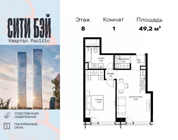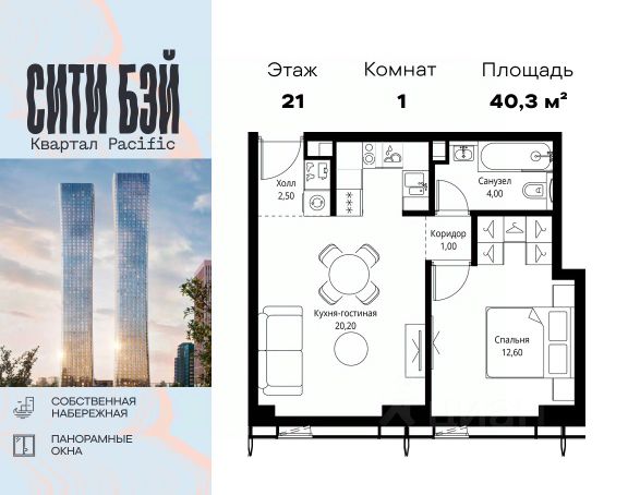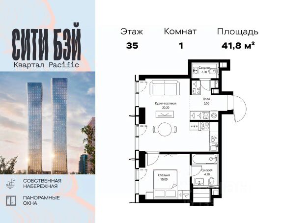 Прямая продажа от застройщика. Продаётся 1-комнатная квартира общей площадью 33.10 м² без отделки в ЖК Сити Бэй, квартале Пасифик, на 35-м этаже 59 этажного дома. Концепция жилого комплекса Сити Бэй - настоящий город в городе с отлично развитой инфраструктурой и собственной благоустроенной набережной. На территории жилого комплекса расположено пять кварталов - Атлантик, Пасифик, Индиан, Норс, Cliff. Жилой квартал Сити Бэй отличается оригинальной концепцией и выделяется среди других проектов такими характеристиками как: - Архитектура, - Виды из окон, - Природное окружение, вызывая гордость у жителей и восхищение у прохожих. Вся жизнь района Покровское-Стрешнево строится вокруг водных объектов: - Пойма реки Сходни с уникальной экосистемой, - Речка Химка и Химкинское водохранилище, - Москва-река, - Канал имени Москвы. Кругом вода, и местные с удовольствием этим пользуются. А сразу за рекой - центр водного спорта в Строгино с вейк-парком и яхт-клубами. Помимо воды, здесь очень много зелени: - Рядом Сходненский ковш памятник природы, естественный амфитеатр глубиной 40 метров; - Парк при усадьбе Братцево с фруктовым садом; - Дубовая роща "Маяк", - Алешкинский лес; - Лесопарк Покровское-Стрешнево с пляжами и бобрами. Главные транспортные артерии района: - Волоколамское шоссе, - Таганско-Краснопресненская линия метро и МЦД-2. Всего за 20 минут можно добраться до центра на машине или метро, а МЦД связывает ЖК Сити Бэй с северными, восточными и юго-восточными районами. Компания MR предлагает своим клиентам специальные условия приобретения квартир в рамках программ ипотечного кредитования от банков-партнеров.