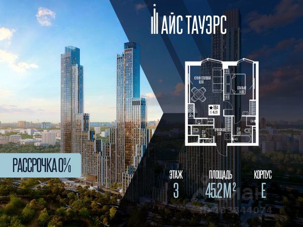Беспроцентная рассрочка от застройщика. Продается 1-комнатная квартира на 5 этаже, 35.1 кв.м. площади в жилом комплексе "Айс Тауэрс", который расположен в Западном административном округе Москвы. Архитектура комплекса отличается панорамным остеклением фасадов. Квартиры продаются с опциональной предчистовой отделкой. В комплексе установлены системы видеонаблюдения, климат-контроля и элементы системы "умный дом". Территория и расположение На придомовой закрытой территории обустроены детские площадки, спортивные площадки и места для отдыха. Комплекс граничит с особо охраняемой природной зоной, что обеспечивает доступ к прогулочным маршрутам. Инфраструктура комплекса • Общественное пространство с универсальными залами, коворкингом и библиотекой. • Помещения для детских занятий и мастер-классов. • Предусмотрены кабинеты для приема специалистов (стилистов, массажистов). В комплексе работают круглосуточная консьерж-служба и служба доставки (внутри комплекса). Доступны услуги парковки и помощи с багажом. Для повседневного удобства предусмотрены: • Колясочные и велосипедные хранилища. • Душевые для домашних животных и груминг. • Мобильное приложение для управления сервисами.