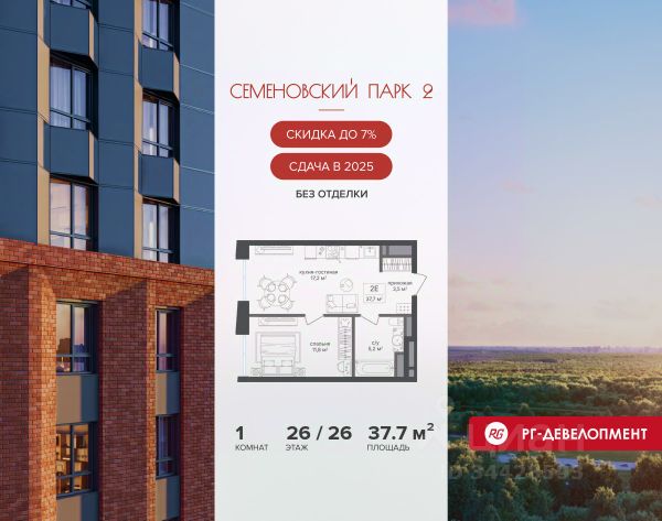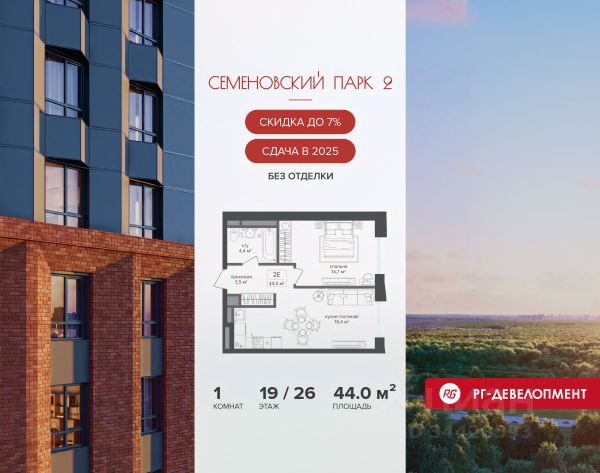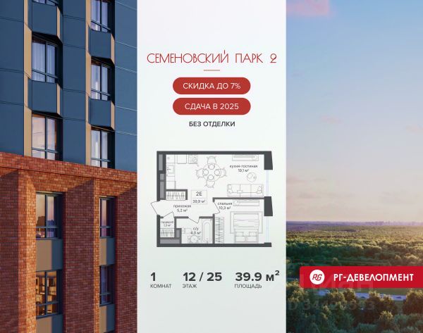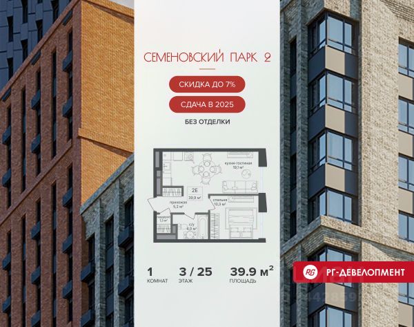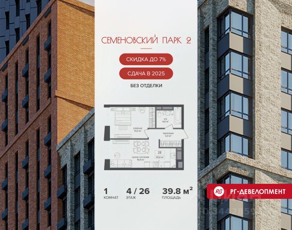 Ипотека для каждого! Полная стоимость кредита от 11,578% до 22,490%. Ставка от 0,11% в АО "Альфа-Банк" фиксируется на 1 год с даты заключения кредитного договора, далее полная стоимость кредита от 25,819% до 28,767% ставка 21,59% до окончания срока кредитования. Первоначальный взнос — от 20% от стоимости квартиры. Срок кредитования — от 3 до 30 лет. Ипотека на весь срок! Полная стоимость кредита от 23,396% до 26,058% со ставкой 14,5%! Первоначальный взнос —от 20,01% от стоимости квартиры. Срок кредитования — от 3 до 30 лет. АО "Банк ДОМ.РФ" универсальная лицензия Банка России 2312 от 19.12.2018. Скидка 7% при покупке квартиры! Цена указана с учетом максимального размера скидки. Продается 1-к квартира 39,7 кв.м. в ЖК "Семеновский парк 2" на 3-м этаже 18 этажного дома. Компания "РГ-Девелопмент" предоставляет скидки на квартиры в жилом комплексе. Акция действительна с 12.09.24 г. до 30.11.25г. включительно. Чтобы воспользоваться предложением, необходимо подписать договор на приобретение недвижимости до 30.11.25г., включительно. Прямая продажа от застройщика! Квартиры без отделки. Срок сдачи корпуса - 4 кв. 2025 г. ЖК "Семеновский парк 2" - это идеальное место для того, чтобы стать вашим домом. Проект расположен в исторической части Москвы вблизи Измайловского лесопарка, в 1 км от ЦАО. 4 станции метро отделяют вас от Красной площади и 15 минут на автомобиле - от Садового кольца. Продам 1-комнатную квартиру первичка в районе Соколиная гора в Москве.