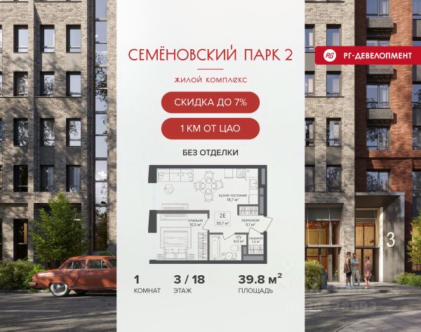 Ипотека для каждого! Полная стоимость кредита от 12,380% до 18,537%. Ставка от 0,11% в АО "Альфа-Банк", ген. лицензия ЦБ РФ 1326 от 16.01.2015. Ставка фиксируется на первые 12 месяцев, далее полная стоимость кредита от 22,022% до 24,599% ставка 21,59%. Первоначальный взнос — от 20,1% от стоимости квартиры. Срок кредитования — от 4 до 30 лет. Ипотека на весь срок! Полная стоимость кредита от 23,396% до 26,058% со ставкой 14,5%! Первоначальный взнос —от 20,01% от стоимости квартиры. Срок кредитования — от 3 до 30 лет. АО "Банк ДОМ.РФ" универсальная лицензия Банка России 2312 от 19.12.2018. Скидка 7% при покупке квартиры! Цена указана с учетом максимального размера скидки. Продается 1-к квартира 46,1 кв.м. в ЖК "Семеновский парк 2" на 11-м этаже 18 этажного дома. Компания "РГ-Девелопмент" предоставляет скидку на квартиры в жилом комплексе. Акция действительна до 30.04.2026 включительно. Чтобы воспользоваться предложением, необходимо подписать договор на приобретение недвижимости до 30.04.2026 включительно. Компания "РГ-Девелопмент" вошла в ТОП-10 девелоперов по объёму введённого жилья в "Старой Москве" по итогам 2025 года. Прямая продажа от застройщика! Квартиры без отделки. Срок сдачи корпуса - 1 кв. 2026 г., корпус сдан. Выдача ключей. ЖК "Семеновский парк 2" - это идеальное место для того, чтобы стать вашим домом. Проект расположен в исторической части Москвы вблизи Измайловского лесопарка, в 1 км от ЦАО. 4 станции метро отделяют вас от Красной площади и 15 минут на автомобиле - от Садового кольца. Продам 1-комнатную квартиру первичка в районе Соколиная гора в Москве.