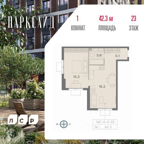 Продается 1-комн. кв-ра площадью 42.30 кв.м на 23 этаже 23 этажного монолитного дома в ЖК "ПАРКСАЙД" от Группа ЛСР. "Парксайд" это гармония природы и города. Жилой комплекс бизнес-класса строится в районе Чертаново Центральное Южного административного округа Москвы. В непосредственной близости от Битцевского леса, одного из крупнейших лесных массивов Москвы. Несмотря на приватность расположения, развитая инфраструктура жилого комплекса и района позволяет жить полной жизнью. В шаговой доступности общеобразовательные учреждения, спортивные центры, продуктовые магазины, парки для прогулок и отдыха и, конечно, кордодром единственный в Москве центр для авиамоделирования. Жилой комплекс "Парксайд" расположен в шаговой доступности от четырех станций метро: "Пражская", "Ул. Академика Янгеля", "Новоясеневская" и "Битцевский парк". Добраться до метро можно как пешком, так и на общественном транспорте. Для автомобилистов есть удобные выезды на Варшавское шоссе и Чертановскую улицу. Дорога до ТТК займет около 20 минут, а до центра столица порядка получаса. Благодаря строительству Южной рокады не только улучшилась транспортная доступность всего района, но и сократилось время в пути.
