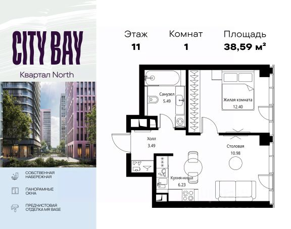 Прямая продажа от застройщика. Продаётся 1-комнатная квартира общей площадью 39.60 м² с предчистовой отделкой в ЖК City Вау на 49-м этаже 52 этажного дома. Корпус сдан. Концепция жилого комплекса City Вау - настоящий город в городе с отлично развитой инфраструктурой и собственной благоустроенной набережной. На территории жилого комплекса расположено пять кварталов - Atlantic, Pacific, Indian, North, Cliff. Жилой квартал City Вау отличается оригинальной концепцией и выделяется среди других проектов такими характеристиками как: - Архитектура, - Виды из окон, - Природное окружение, вызывая гордость у жителей и восхищение у прохожих. Вся жизнь района Покровское-Стрешнево строится вокруг водных объектов: - Пойма реки Сходни с уникальной экосистемой, - Речка Химка и Химкинское водохранилище, - Москва-река, - Канал имени Москвы. Кругом вода, и местные с удовольствием этим пользуются. А сразу за рекой - центр водного спорта в Строгино с вейк-парком и яхт-клубами. Помимо воды, здесь очень много зелени: - Рядом Сходненский ковш памятник природы, естественный амфитеатр глубиной 40 метров; - Парк при усадьбе Братцево с фруктовым садом; - Дубовая роща "Маяк", - Алешкинский лес; - Лесопарк Покровское-Стрешнево с пляжами и бобрами. Главные транспортные артерии района: - Волоколамское шоссе, - Таганско-Краснопресненская линия метро и МЦД-2. Всего за 20 минут можно добраться до центра на машине или метро, а МЦД связывает ЖК City Вау с северными, восточными и юго-восточными районами. Компания MR предлагает своим клиентам специальные условия приобретения квартир в рамках программ ипотечного кредитования от банков-партнеров. Купить 1-комнатную квартиру первичка на шоссе Волоколамское в Москве.