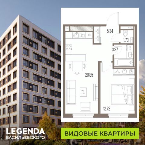 Продается однокомнатная квартира с предчистовой отделкой в ЖК "LEGENDA Васильевского" на 8 этаже. Общая площадь: 42.6 кв.м., жилая: 12.74 кв.м., площадь просторной кухни-столовой: 17.72 кв.м. Все окна выходят на одну сторону. В квартире один совмещенный санузел. Высота потолков 2.7 м. "LEGENDA Васильевского" жилой квартал в минутной доступности от Финского залива, главного креативного хаба Санкт-Петербурга Севкабель Порта и других точек притяжения. Современные инженерные и технические решения, повышающие качество жизни TechnoBox включают в себя: стационарный и удаленный контроль дома, систему вентиляции Air Design - здоровое дыхание без лишнего шума, мультисервисную сеть, объединяющую коммуникационные системы, удаленное управление электроприборами, контроль отопления в каждом помещении, поддерживающий оптимальный температурный баланс во время "холодного" периода", датчики протечки, датчик открытия входной двери. Мультисервисная сеть (МСС) объединяет ключевые слаботочные системы дома, задавая им единый высокий стандарт работы, обеспечивая надёжность их функционирования и управления. Квартира готова к декорированию. Застройщиком сделана шумоизоляция; стены подготовлены для отделки; проведена электрика с учетом рекомендаций по расстановке мебели и бытовой техники; выровнен пол. В каждой квартире установлена взломостойкая входная дверь, окна со специальным термоизолированным алюминиевым профилем. Двор жилого комплекса "LEGENDA Васильевского" закрыт. Проект состоит из шести разноформатных корпусов с ритмичными фасадами в духе пост-конструктивизма. Геометрия жилого комплекса состоит из четко простроенных осей, чередующих открытые пространства и объемы корпусов, каждый из которых обладает своим визуальным кодом индивидуальным рисунком фасада и цветовой палитрой. Корпуса образуют периметр с общественными пространствами: площадью с кафе, магазинами и пешеходным променадом с детскими игровыми хабами, местами для спокойного отдыха и workout-зоной. На территории комплекса предусмотрены теплый подземный паркинг и два наземных 4-х этажных паркинга.