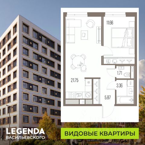 Просторная 1-комн. квартира с предчистовой отделкой в ЖК "Северный Порт" на 19 этаже. Общая площадь: 47.8 кв.м., жилая: 11.5 кв.м., площадь просторной кухни-столовой: 21.5 кв.м. Все окна выходят на одну сторону. В квартире один совмещенный и один раздельный санузел. Высота потолков 3.15 м. Квартира находится в корпусе 7.1. Дом монолитный, одноподъездный, высотой 34 этажа. На этаже 14 квартир. В подъезде 3 пассажирских и 3 грузовых лифта. Окончание строительства - 1 квартал 2028 года. Оформление сделки по договору долевого участия. В шаговой доступности от дома находятся станции метро (расстояние по прямой): "Беломорская" (1.1 км), "Планерная" (1.5 км), "Речной вокзал" (1.6 км), также недалеко от этого корпуса находится станция метро "Ховрино". В проекте "Северный Порт" реализованы авторские решения девелопера LEGENDA, которые представлены уникальными фасадными решениями, коллекцией дизайнерских квартир, а также инновационным оснащением комплектацией TechnoBox - полностью технологически подготовленным пространством для любых современных сценариев жизни. В 1-ой очереди строительства проекта "Северный Порт" авторская комплектация TechnoBox представлена в корпусах 7.1 и 7.3 и включает в себя два направления: Технологически подготовленное пространство: - Smart Home Ready - стационарное и удаленное управление квартирой. - Air Design - всегда свежий воздух, никакого шума и пыли. - Мультизональное кондиционирование. - Мультисервисная сеть - единая сеть коммуникационных систем. Готовность к декорированию: - Шумоизоляция - комплексные меры для защиты от лишнего шума. - Подготовка стен - все стены подготовлены к отделке дизайнерскими материалами. - Выровненный пол - полы выровнены стяжкой из цементно-песчаной смеси, повышающей механическую прочность, и готовы к укладке покрытия. - Электрические сети - коммуникации расположены с учетом рекомендаций по расстановке мебели и техники. "Северный порт" от LEGENDA входит в крупномасштабный проект комплексного развития территории Северного речного порта, реализуемый правительством Москвы, и представляет собой микс жилой, коммерческой, социальной и общественной инфраструктуры. Автором концепции обустройства территории выступило архитектурное бюро Сергея Скуратова. Созданный дизайн-код лёг в основу проекта, разработанного LEGENDA совместно с архитектурным бюро KAMEN Architects. Город ставит новый акцент, создавая мощный центр притяжения в экологичной локации у Северного речного вокзала. Близость к воде, парковым зонам и футуристичный архитектурный образ определяют потенциал развития проекта на несколько десятилетий вперед. Важной частью проекта станет строительство самой протяженной благоустроенной набережной, которая соединится с парком Северного речного вокзала и создаст уникальное прогулочное пространство длиной 3,2 км, вдоль которого будет организован современный торговый променад. В основе концепции благоустройства лежит авторская модель проектирования дворов от LE