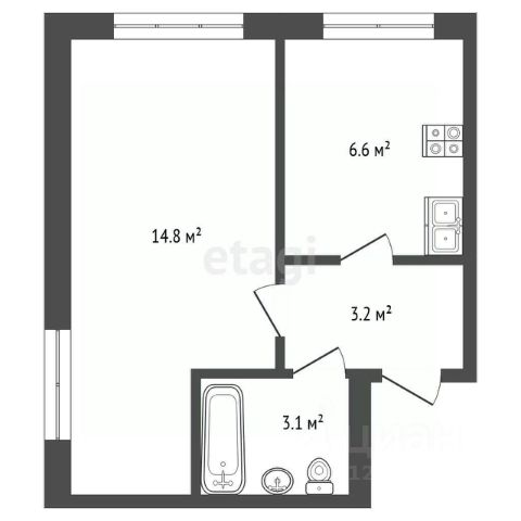 Квартира, площадью 27,4 кв.м., расположенная по адресу: г. Москва, ул. Академика Арцимовича, д. 3, корп. 2, кв. 69, с кадастровым номером 77:06:0006005:1196