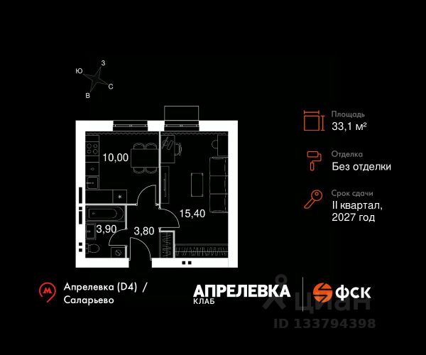 Прямая продажа от застройщика! Загородный жилой комплекс класса Комфорт Плюс. Продаётся 1-к квартира 103 общей площадью 28.1 кв.м на 5-м этаже 5 этажного дома. Без отделки. Расположение комплекса: "Апрелевка Клаб" это жилой комплекс всего в 30 км от Москвы по Киевскому шоссе, где городские удобства гармонично сочетаются с природой. Здесь начинается новая ступень жизни: современная малоэтажная застройка не нарушает живописные виды, а закрытая территория дарит чувство безопасности. Особенности проекта: - Улучшенная отделка МОПов - Социальная инфраструктура в шаговой доступности: муниципальные детский сад и школа, поликлиника - Не просто школа: школа МГИМО - Школа искусств МАРХИ - Всесезонное уникальное благоустройство: от города к природе через призму искусства - Комфортное пространство (спорт, досуг с детьми, работа в удаленном формате с прекрасными видами, место для творчества, тихие места для уединения и размышления) - Отличная транспортная доступность Транспортная доступность: - Метро Филатов Луг и Рассказовка 25 км - МЦД Апрелевка 5 км - МКАД — 30 км - Садовое кольцо — 45 км - Метро в Троицке (открытие в 2030) — 22 км - Ближайшая остановка общ. транспорта "Фрунзевец" 550 м - Ст. м. "Саларьево" 30 мин. на автобусе Внутренняя инфраструктура: Здесь есть хобби на любой вкус, возраст и сезон. Велосипедные, беговые и прогулочные маршруты, уличный workout, летний амфитеатр, спортивная площадка, центральная площадь с сухим фонтаном и игровыми зонами. Крытые развлечения: зона коворкинга, детская комната, кафе. В жилом комплексе будет современная школа на 830 мест и детский сад на 400 мест нового формата: с просторными классами и современным оснащением согласно высоким стандартам. Также на территории будет размещена школа искусств. Дворы без машин, игровые зоны и маршруты для прогулок с навигацией минимизируют риски и создают ощущение защищенности. Вдоль южной границы комплекса протекает река Десна, создавая зону отдыха в природном окружении.