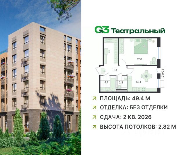 В современном квартале бизнес-класса G3 Театральный продаётся 1-комнатная квартира, общей площадью 49.2 кв.м, расположенная на 4 этаже (корпус 2, секция 6). "G3 Театральный" - это малоэтажный загородный smart business квартал, который возводится в Раменском городском округе Московской области, расположенный в окружении вековых сосен, с уникальным ландшафтным двором. Отличная транспортная доступность: - 500 метров от МЦД-3 "Ильинская"; - 8 км до выезда на Новорязанское шоссе; - 16 км от МКАД. Удачное расположение: - живая сосновая роща; - лесопарк "Треугольный" и Цаговский лес; - 12 минут на машине до городского парка; - 10 минут на машине до города Жуковский. Развивающаяся инфраструктура: На территории квартала появятся свой детский сад, спортплощадки, игровые зоны, кафе, аптеки, магазины и многое другое необходимое для жизни. В шаговой доступности находятся поликлиника, школы, детские сады, фитнес-клубы. В каждом подъезде устроены зоны для хранения колясок и велосипедов, розетки для электросамокатов, лапомойки для домашних питомцев. Ваши автомобили будут находиться на закрытой территории под круглосуточным видеонаблюдением. Паркинг с зарядкой для электромобилей. Квартиру можно приобрести по выгодным ипотечным условиям от крупнейших российских банков - Сбербанк, ВТБ, Росбанк. Ключи до сентября 2026 года.