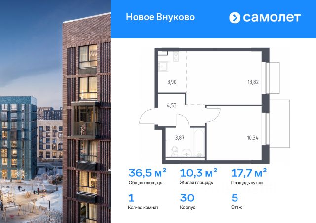 Строим кварталы для жизни с заботой о будущем. Предлагается 1-комнатная квартира комфорт-класса 37,04 кв.м в корпусе 29 на 4 этаже, в ЖК "Новое Внуково" Квартира с предчистовой отделкой. Доступность дополнительных опций уточняйте у застройщика. Приобрести квартиру возможно по специальным акциям от застройщика, с текущими условиями акций можно ознакомиться в блоке "Акций". Цена динамическая и может отличаться, уточняйте актуальность у застройщика. "Новое Внуково" — это жилой комплекс в Новой Москве, у подножия берега реки Незнайка. Поблизости — живописные места для прогулок: народный парк "Ручеек", усадьба Старо-Никольское, Валуевский и Ульяновский лесопарки. Часть домов сдана и внутри района уже открыт детсад с бассейном, а в ближайшее время откроются еще 3 детсада, 2 школы и поликлиника. На территории проекта будет построен первый в России Центр Российской Федерации Баскетбола, где будут площадки с трибунами, тренажерный зал, кафе и конференц-зал. Дворы-парки закрыты от машин и посторонних. На территории — прогулочный маршрут вдоль реки Незнайка и набережная с шезлонгами и качелями для отдыха. Также здесь появится плейхаб "Незнайка на Луне", площадь для мероприятий с сухим фонтаном, летним кинотеатром и кафе. В жилом комплексе — монолитные дома высотой от 6 до 14 этажей. Фасады облицованы кирпичом природных оттенков.