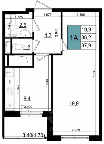 Квартира расположена в 5 секции на 6-м этаже 24-этажного монолитного дома, построенного в 2018 году. Расчетная площадь площадь составляет 41,3 кв. м, жилая — 18,6 кв. м, просторная кухня— 10,2 кв. м, балкон 4,6 кв.м. Высота потолков 2.85 метра.