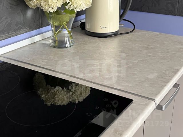 -кухонный гарнитур, с встроенной бытовой техникой, духовой шкаф, варачная индукционная плита, вытяжка, холодильник. Сплит система. Мебель.