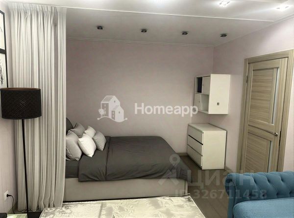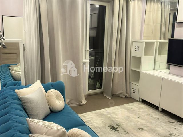 * Комната: интерьер от мебельного ателье Mr.Doors: встроенный шкаф, подвесные шкафы и тумба под телевизор с глянцевыми панелями и вставками из эко-кожи. Умные электрокарниз и люстра, включающиеся с телефона или по голосу с Алисы. Кондиционер Toshiba, обслуживался своевременно. Угловой диван от Hoff.