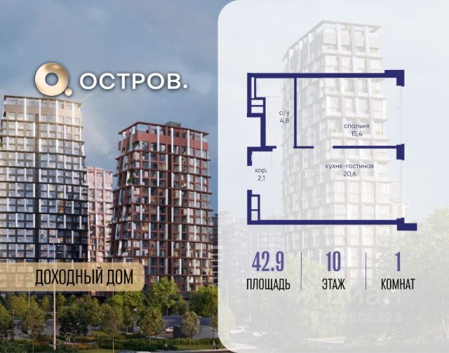 Продаётся однокомнатная квартира от застройщика: общая площадь 44.10 м², жилая 14.00 м², кухня 19.20 м², 11, жилой квартал "Остров 12", корпус 1 (12.1 квартал) (секция 2). срок сдачи: 4-кв. 2025. , 1 совмещенный санузел. В жилой зоне 2 больших окна на одну сторону, хорошая инсоляция. Позвоните сейчас и забронируйте квартиру! Купите квартиру для курортной жизни в Москве в квартале ОСТРОВ.12.1. Это единственный на ОСТРОВЕ квартал бизнес-класса, расположенный на первой линии у реки - здесь царит атмосфера ежедневного отпуска. Дома созданы в узнаваемом футуристичном стиле и выглядят как произведения современного искусства. Для жителей предусмотрены фитнес-рум и детский клуб, гостиная и кинотеатр, переговорные и репетиторские комнаты. На крышах устроены видовые общественные пространства с зонами для йоги, коворкингами, лаунжами. Двор-парк располагает всем необходимым для отдыха и общения всех возрастов. ОСТРОВ.12.1 - часть жилого комплекса на западе Москвы, в 15 минутах езды от центра. Это настоящий заповедник посреди большого города, в окружении реки и 650 га заповедников. Здесь все необходимое находится по соседству: от детского сада до супермаркета, от фитнес-зала до серфинг-центра. На территории созданы все условия для отдыха и общения: клубная инфраструктура в домах и дворы-парки, набережные и променады, маршруты для спортсменов, детей и возрастных жителей. В нескольких минутах ходьбы расположена станция метро "Мнёвники" БКЛ. На автомобиле - 10 минут до Москва-Сити и 15 минут до Садового кольца.