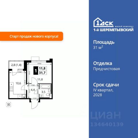 Прямая продажа от застройщика! Жилой Комплекс класса Комфорт Плюс. Продаётся 1-к квартира номер 229 общей площадью 34.8 кв.м. на 2-м этаже 17 этажного здания. Без отделки. Особенности квартиры: - Мастер-зона с гардеробной. Просторное место для отдыха и удобного хранения вещей. - Просторная спальня, в которой можно разместить большую кровать. - Линейная планировка - максимальная функциональность и удобство. - Можно оборудовать рабочее место - комфорт для работы и учёбы. - Гардеробная - удобство для хранения и организации вещей. - Ниша под шкаф - компактное и удобное место для вещей. - Балкон - открытое пространство для отдыха. Информация о комплексе: ЖК 1-й Шереметьевский расположен в самом центре Подрезково, от него всего 6 минут пешком до одноименной станции ж/д и планируемой к открытию МЦД-3. В комплексе яркие и уютные, лобби, большая колясочная, лапомойка. Благодаря гостевому санузлу на 1 этаже прогулки станут по-настоящему долгими. Два лифта пассажирский и грузовой.Во всех корпусах 1-го Шереметьевского там устроены кладовые, а в корпусах 3-5 есть подземный паркинг. В ЖК 1-й Шереметьевский разнообразие площадей и планировок. Большие кухни-гостиные: в них два окна или больше. Во всех квартирах площадью от 40 кв.м. и выше спроектировано 2 санузла. Большие остекленные лоджии с отделкой. Система Умная квартира, реализованная в 1-м Шереметьевском. В каждой квартире установлены датчики протечек и запорные вентили с электроприводом, которые самостоятельно перекрывают воду в случае аварии. Мобильное приложение управляет группами электропотребителей: даже если вы забыли утюг включенным, можно обесточить его дистанционно. Транспортная доступность: - Общественный транспорт: До ближайших станций метро Планерной и Войковской около 40-50 минут на автобусе. 6 минут до ЖД станции Подрезково (МЦД-3) - Личный автотранспорт: Удобный выезд на Ленинградское шоссе позволяет быстро добираться до МКАДа и в центр Москвы, до платной трассы М11 и в аэропорт Шереметьево. 3 минуты до Ленинградского ш. 10 минут до платной трассы М11 15 минут до МКАД 20 минут до ст. м Войковская 25 минут до ст. м Планерная Внутренняя инфраструктура: 1-й Шереметьевский не только сокращает время, которое вы будете проводить в дороге. Но и предпринимает многое, чтобы вы меньше ездили и чаще ходили. На первых этажах корпусов разместятся фрешмаркеты и пункты выдачи маркетплейсов, салоны красоты и химчистки, кофейни и пекарни всё, что необходимо изо дня в день, но не заслуживает отдельной поездки на машине или такси. В квартале будут построены собственные школа и детский сад. Школа рассчитана на 1100 учеников. В ней будут 25-метровый бассейн и просторный атриум, медиатека. Детский сад рассчитана на 400 малышей. Здесь стильный дизайн и комфортные группы, большой физкультурный зал и просторный зал для занятия музыкой. Дворы без машин. Безопасные детские площадки. Вдоль корпусов организованы зоны тихого отдыха: детский гомон с далеких