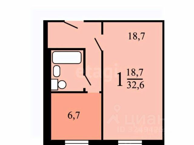 8/9 этажного панельного дома II-49 1970 г.п., общая площадь 32,4 кв.м., жилая 18,7 кв.м, кухня 6,7 кв.м., санузел совмещен, счетчики горячей и холодной воды.