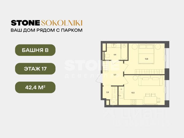 Старт продаж квартир в ЖК STONE SOKOLNIKI от девелопера STONE. В продаже студия правильной формы для реализации любого дизайн-решения, идеально подходящая как студентам, так и молодым парам, которые только планируют создать свой семейный очаг. Современная архитектура проекта органично вписана в городскую среду. Концепция проекта разработана архитектурным бюро WALL Проект состоит из трех разновысотных башен высотой в 33, 28 и 24 этажа с чистой геометрией и увеличенной площадью остекления, которая позволит насладиться городской панорамой и видами на парк "Сокольники". Транспортная доступность - 10 мин. пешком до метро и БКЛ "Сокольники" и "Электрозаводская" - 12 мин. пешком до парка Сокольники - 10 мин. пешком до станции МЦД-3 "Митьково", которая позволит комфортно добираться в центр города и за его пределы Инфраструктура: В каждой входной группе предусмотрены помещения для временного хранения велосипедов, лапомойка, гостевой санузел, а также комната матери и ребенка. А колясочные появятся на каждом этаже - ведь это самое удобное решение для детей и их родителей. Планировочные решения: Планировки квартир в STONE Sokolniki создавались с учетом разнообразия современных сценариев жизни в городе. В проекте предусмотрены просторные кухни-гостиные, изолированные спальни с мастер-блоком, планировки для семей со взрослыми детьми, с двумя детьми разных возрастов. Благодаря грамотному зонированию квартир можно насладиться и временем с семьей, и уединением или, наоборот, устроить вечеринку вместе с друзьями. - Квартиры от 28 до 135 кв. м. Детский сад во дворе дома: Девелопер STONE осуществляет самостоятельный поиск оператора для детского сада, так как курирует наполнение проекта. На этапе финальной готовности будет выбран лучший оператор, отвечающий запросам качества и цены. Во всех своих проектах девелопер берет на себя ответственность за сдачу части помещений. Удобное хранение: В проекте STONE Sokolniki предусмотрена максимальная обеспеченность кладовыми. Хранения велосипедов в подземном паркинге возможно в зимний период, а летом будет организовано временное хранение на улице. Колясочные есть на каждом этаже всех трех жилых башен. - Колясочные на этаже - Кладовые для хранения Безопасная собственная территория дома, сим и паркинг: Внутри двора комфортно перемещаться пешком, все въезды в паркинг организованы по внешнему периметру. Велосипеды, самокаты и электросамокаты, детские беговелы и коляски - в приоритете, для всех колесных видов транспорта продуманы удобные маршруты движения и варианты хранения в разные сезоны. STONE - девелопер коммерческой и жилой недвижимости классов бизнес и премиум в Москве с 19-летним опытом. С 2022 года занимает лидирующую позицию на офисном рынке (рейтинг РБК). Сегодня в портфеле девелопера представлено 3 млн кв. м построенных, строящихся и проектируемых объектов, из которых более 1 млн кв. м находятся в стадии строительства. Компания имеет самый масштабный проектный портфель офисной недвижимости класса А на московско