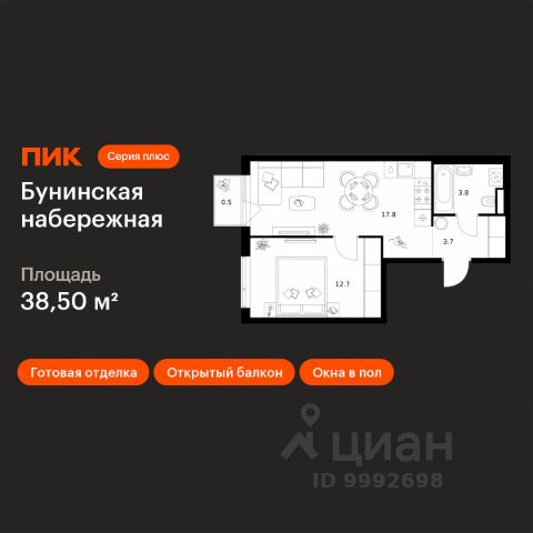 Продаётся 1-комн. квартира площадью 43,8 кв.м на 5 этаже 16 этажного дома (Корпус 2.6/1.1, Секция 1) проекта ПИК Бунинская набережная. Светлый просторный подъезд на уровне земли, функциональная планировка, большие окна, c отделкой. Удобное расположение: 18 минут пешком от м. "Потапово" и 12 минут на автомобиле до станции "Бунинская аллея". 12 минут на автомобиле до трассы Солнцево — Бутово — Варшавское шоссе. 20 минут на автомобиле до МКАД и Калужского шоссе. 1520 минут езды до живописных парков: "Бутовский лесопарк", заказник "Южное Бутово". Особенности проекта Камерный квартал в Новой Москве, на берегу Ивановского пруда. Одна из ключевых особенностей проекта — квартиры с панорамным видом на воду. Архитекторы вдохновились локацией проекта: природные оттенки и активная пластика корпусов напоминают рельефные выступы на берегу, а окна отражают водную гладь, визуально объединяя дома с природой. Преимущества проекта Светлые и просторные лобби с зонами ожидания. Подземный паркинг. Набережная и пешеходная аллея для прогулок. Парк на склоне с игровой зоной. Готовая инфраструктура района: 3 школы, 6 детских садов, взрослая и детская поликлиники. Артикул 968330 (Застройщик ООО СЗ "Стройком") Продается 1-комнатная квартира с балконом рядом с метро Бунинская аллея.
