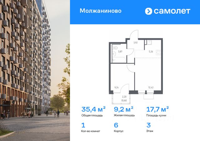 Купить 1-комнатную квартиру с балконом рядом с метро Молжаниново