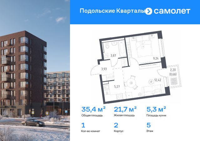Строим кварталы для жизни с заботой о будущем. Предлагается 1-комнатная квартира комфорт-класса 35,39 кв.м в корпусе 2 на 5 этаже, в ЖК "Подольские Кварталы" Квартира без отделки. Доступность опции "отделка" и возможность комплектации мебелью и декором уточняйте у застройщика. Приобрести квартиру возможно по специальным акциям от застройщика, с текущими условиями акций можно ознакомиться в блоке "Акций". Цена динамическая и может отличаться, уточняйте актуальность у застройщика. "Подольские кварталы" — жилой комплекс в Новой Москве, рядом с Дубровицким лесом и рекой Десной. До станции МЦД-2 "Остафьево" - 5 минут на общественном транспорте, до станции МЦД-2 "Силикатная" — 8 минут на машине. Рядом — музей-заповедник "Остафьево", усадьбы Плещеево и Дубровицы. В квартале будут детский сад на 200 мест и учебно-воспитательный комплекс на 1 500 мест, в который войдут школа и детский сад. Первые этажи жилых корпусов займут квартиры, кафе, магазины и салоны красоты. Дворы-парки будут радовать жителей цветением и зеленью: здесь высадят липы, сосны, ели, клены и сирень. Плэйхаб станет местом встреч всех любителей активного отдыха: застройщик оборудует зоны тренажеров и воркаута, площадки для игр в настольный теннис, мяч, шахматы. Также появятся современные игровые площадки для детей. Для автовладельцев предусмотрен многоуровневый паркинг. В проекте — монолитные дома высотой от 9 до 12 этажей. Теплые оттенки фасадов соответствуют дизайн-коду "Янтарный берег". Фасады облицованы ложковой кирпичной кладкой.