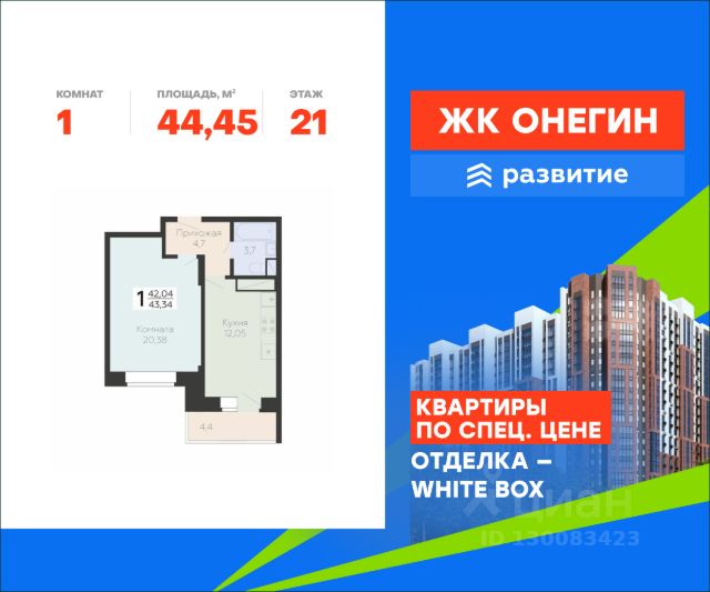 Продается квартира площадью 41.28 кв. м с отделкой White box. Квартира находится на 22 этаже 22 этажного дома, в новом жилом комплексе "Онегин", расположенном по адресу: Московская область, г. Подольск, ул. Садовая 3, корп. 1. "Онегин" - комфорт в деталях. Проект от федерального застройщика "Развитие" расположился в центральной части Подольска - города-спутника столицы. Жилой комплекс состоит из 10 секций переменной высоты (20 - 22 этажа) и включает в себя 510 квартир, собственную инфраструктуру, закрытый благоустроенный двор-парк. Прекрасный баланс города и природы - ЖК "Онегин". Расположение Пешком: - 5 мин. до остановки "Красная горка"; - 10 мин. до склона у реки Пахры; - 30 мин. до центра Подольска; - 30 мин. до МЦД "Силикатная" (или 15 мин. на автобусе). На автомобиле: - 3 мин. до проспекта Ленина с выездом на Симферопольское шоссе; - 10 мин. до МЦД-2 "Подольск"; - 10 минут до горнолыжного комплекса "Красная Горка"; - 30 мин. до ст. метро "Бульвар Дмитрия Донского"; - 35 мин. до МКАД. Благоустройство - большой приватный двор-парк; - всесезонная растительность: взрослые деревья, кустарники, травы, цветочные клумбы; - декоративные камни и многоуровневое освещение для уютной атмосферы; - мощеные тропинки с деревянными скамейками для отдыха; - площадки для малышей с безопасным покрытием; - яркие игровые комплексы для подростков; - спортивный корт для футбола и баскетбола; - многофункциональная воркаут-зона; - уютные места для чтения или работы в тишине. Комфорт и безопасность - монолитно-кирпичные дома с высокой тепло- и шумоизоляцией; - витражные окна, наполняющее квартиры и подъезды светом; - стильные и просторные входные группы; - вход в подъезд без ступенек и перепадов, комфортный доступ для родителей с колясками, пожилых людей и маломобильных жителей; - на первом этаже предусмотрены просторные колясочные; - 2 пассажирских лифта и 1 грузовой в каждом подъезде; - система охраны и круглосуточное видеонаблюдение. Инфраструктура и окружение - подземный паркинг на 262 машино-места, спуститься к автомобилю можно прямо с вашего этажа на лифте - быстро и удобно в любую погоду; - гостевые парковочные места на прилегающей территории; - кладовки расположены на -1 и -2 этажах, хранить сезонные вещи легко и безопасно: доступ - напрямую с вашего этажа на лифте; - школы, частные и муниципальные детские сады, магазины, кафе и все сервисы бытовых услуг в шаговой доступности; - на первых этажах - коммерческие помещения, все необходимое рядом; - 3 фитнес-центра, стадионы "Зенит" и "Подолье", 4 взрослых и детских бассейна; - торгово-развлекательные центры "Капитолий", "Галерея", "Кварц"; - парк культуры и отдыха имени В. Талалихина, музей-заповедник "Подолье", горнолыжный комплекс "Красная Горка", исторические усадьбы "Остафьево" и "Дубровицы" и другие места для семейного отдыха.