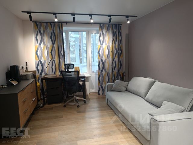 Просторная комната с небольшлй нишей, есть большой, застекленный, с отделкой, балкон. Квартира в хорошем, жилом состоянии, можно зайти и жить!