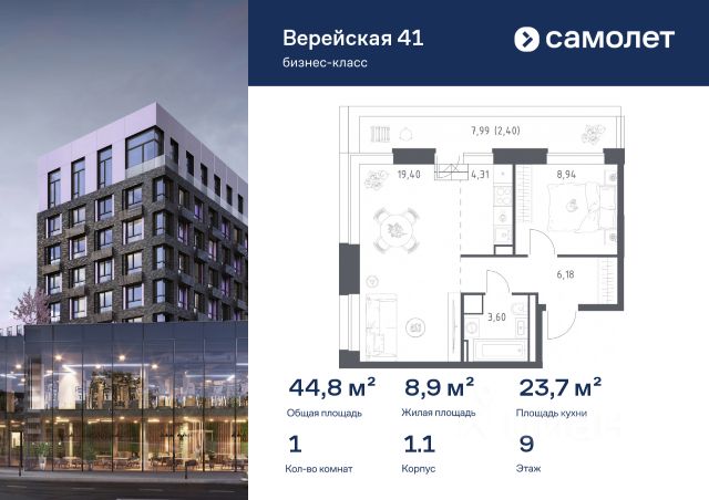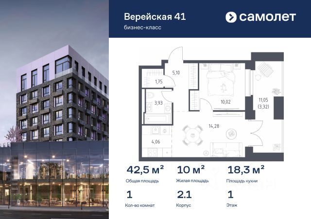 Строим кварталы для жизни с заботой о будущем. Предлагается 1-комнатная квартира бизнес-класса 38,66 кв.м в корпусе 4.2 на 6 этаже, в "Верейская 41" Квартира с предчистовой отделкой. Доступность дополнительных опций уточняйте у застройщика. Приобрести квартиру возможно по специальным акциям от застройщика, с текущими условиями акций можно ознакомиться в блоке "Акций". Цена динамическая и может отличаться, уточняйте актуальность у застройщика. "Верейская 41" — проект бизнес-класса рядом с "Долиной реки Сетунь" и Кутузовским проспектом. Из панорамных окон открываются виды на природный заказник. Комплекс включает 4 урбан-блока высотой до 14 этажей, зеленые террасы, сад с навесами из растений, спортивные и игровые площадки, плоскостной и 2 подземных паркинга. Планировки сдаются с дизайнерской отделкой в природных тонах.