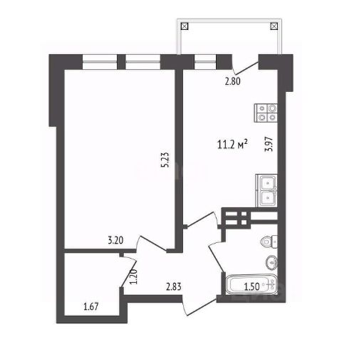 - кухня чуть более 11 кв. м с выходом на балкон (3 кв. м),