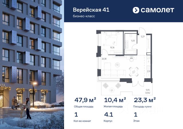 Строим кварталы для жизни с заботой о будущем. Предлагается 1-комнатная квартира бизнес-класса 47,62 кв.м в корпусе 2.2 на 1 этаже, в "Верейская 41" Квартира без отделки. Доступность опции "отделка" и возможность комплектации мебелью и декором уточняйте у застройщика. Приобрести квартиру возможно по специальным акциям от застройщика, с текущими условиями акций можно ознакомиться в блоке "Акций". Цена динамическая и может отличаться, уточняйте актуальность у застройщика. "Верейская 41" — проект бизнес-класса рядом с "Долиной реки Сетунь" и Кутузовским проспектом. Из панорамных окон открываются виды на природный заказник. Комплекс включает 4 урбан-блока высотой до 14 этажей, зеленые террасы, сад с навесами из растений, спортивные и игровые площадки, плоскостной и 2 подземных паркинга. Планировки сдаются с дизайнерской отделкой в природных тонах. Продам 1-комнатную квартиру с балконом в районе Можайский в Москве.