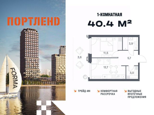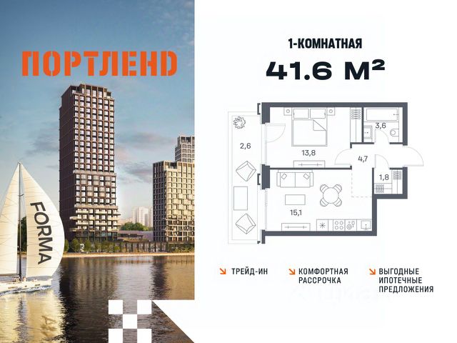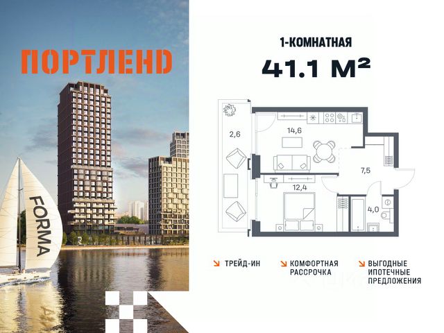 Цены указаны с условием 100% оплаты и стандартной ипотеки. Продаётся 1-к. квартира, 7 этаж в жилом комплексе бизнес-класса ПОРТЛЕНД от девелопера FORMA. ЖК расположен на берегу Москвы-реки в северной части района Печатники в акватории Южного речного порта. Основные преимущества проекта: • Самая протяженная береговая линия реки в Москве 13 км. • Вид на реку в сторону запада панорамные окна на самое широкое водное пространство Москва-реки (900 м) и на закат. • 95% квартир с видом на воду. • К ПОРТЛЕНД не примыкает крупных автомагистралей - отсутствие фонового шума дорог. • В перспективе ближайших 11 лет на территории района запланировано грандиозное преобразование и комплексное развитие. • Собственная набережная длиной 412 м., которая после завершения строительства сомкнется с эко-парком Печатники. • Прямой выход к воде и отсутствие проезжей части между ПОРТЛЕНД и береговой линией. • Инфраструктурное разнообразие: супермаркеты, крупные торговые центры, рестораны, кафе, фитнес-клубы, бьюти-салоны, компании сферы услуг и многое другое. • Собственная школа на 300 мест и детский сад на 275 мест. • Паркинг на 650 м/м • Транспортная вседоступность: метро, авто, велосипед, речной трамвай, канатная дорога • 15 мин. пешком до м. Печатники, 15 мин. на авто до ТТК, 20 минут на авто до Садового кольца Купить 1-комнатную квартиру с балконом в районе Печатники в Москве.