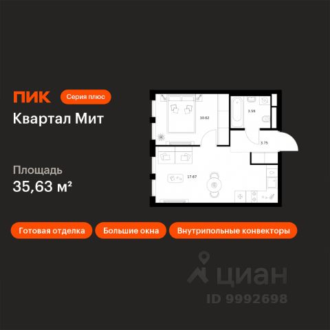 Новостройка! Продается 1-комн. кв-ра площадью 41,31 кв.м, (Корпус 3.6, Секция 10) 2 этаж 19-этажного дома в Квартал Мит от ПИК. "Квартал Мит" строится в экологически чистом районе Митино, где по соседству расположен большой лесопарк, а с двух сторон протекают реки Сходня и Журавка. Для семей с детьми здесь появится школа и два детских сада. В 20 минутах пешком находится станция метро "Пятницкое шоссе", а за 10 минут на автомобиле можно доехать до МКАД. Архитектура от бюро Slava+ Концепция квартала сочетает эстетику и функциональность. Башня-доминанта цвета красной охры и разновысотные корпуса терракотового, белого и графитового оттенков формируют узнаваемый силуэт современного городского пространства. Просторные террасы, разнообразные балконы и окна в пол придают облику динамичность и дарят квартирам уютные места для отдыха. Первые этажи с панорамными окнами создают сцену для яркой городской жизни. Здесь появятся пространства для прогулок, летние террасы, рестораны и коммерческие помещения. Комфорт "Серии плюс" При входе в дом жителей встретят светлые просторные лобби с высокими потолками — попасть сюда можно как со стороны улицы, так и со двора. В лобби будет зона ожидания, велосипедная и колясочная. Быстро и с комфортом подняться на нужный этаж помогут бесшумные скоростные лифты. На подземном этаже появится паркинг и индивидуальные кладовые, где удобно хранить сезонные вещи. #d21.02# Артикул 1035609 (Застройщик АО СЗ "ПФК")