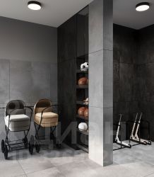 С/У. Дорогой керамогранит на стенах и полу фирмы Tesser, чугунная ванная, заменены трубы. Электрический полотенцесушитель. Раковина SanitaLux, вытяжка, натяжной потолок со встроенными потолочными влагозащищенными светильниками, душевой комплект, гигиенический душ и смесители фирмы Esko Palermo латунь/хром.