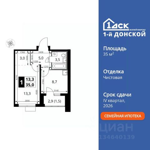 ДОПОЛНИТЕЛЬНАЯ СКИДКА ДО 10% В ОФИСЕ ПРОДАЖ! Прямая продажа от застройщика! Жилой Комплекс класса Комфорт Плюс. Продаётся 1-к квартира номер 394 общей площадью 35 кв.м. на 16-м этаже 24 этажного здания. Чистовая отделка. Особенности квартиры: - МЦД-5 в пешей доступности - Квартал с собственной набережной - Свои 2 детских сада и школа - Мастер-зона с гардеробной. Просторное место для отдыха и удобного хранения вещей. - Линейная планировка - максимальная функциональность и удобство. - Гардеробная - удобство для хранения и организации вещей. - Лоджия - уютное место для отдыха и тишины. Информация о комплексе: Комплекс 1-й Донской расположен в 7 км от МКАД по трассе М-4 Дон. В нем сочетаются все плюсы комфортной городской среды и природного окружения. В проекте достаточно большой процент квартир, выходящих на 2-3 стороны света. Секции-маяки формируют у зданий визуальную L-форму, что придает застройке структуру и ритмику объемов. На ощущение динамики работает и разная этажность зданий. Теплая цветовая палитра фасадов отражает природу Дона. Вечерами дома преображаются благодаря архитектурной подсветке, выгодно выделяясь на городском фоне. Природа оказывает положительное влияние на человека на всех уровнях восприятия: через зрение, запахи, звуки, тактильные ощущения. Неподалеку от ЖК Первый Донской: Ермолинский парк, Видновский лесопарк, Жуковский парк Транспортная доступность: Комплекс удобно расположен в 7 км от МКАД по трассе М-4 Дон (через Видное). Расстояние до Каширского шоссе составляет 12 км. Добраться до метро и центра Москвы позволяет развитая сеть маршрутов общественного наземного транспорта. Действующая ж/д станция Калинина Павелецкого направления в 15-17 минутах ходьбы (МЦД-5 в 2025-2026 гг). Внутренняя инфраструктура: Проект 1-й Донской соседствует с бурно развивающимся районом, основная инфраструктура которого уже сложилась. В строительстве современных жилых комплексов в округе есть свои плюсы: здесь формируется продуманная и комфортная городская среда. Что касается внутренней инфраструктуры, на территории квартала будут расположены собственные муниципальные 2 детских садика и школа, которые помогут совместить приятное с полезным. Территория комплекса пронизана целой сетью живописных пешеходных маршрутов, позволяющих попасть в любой уголок района. Основные пути, как водится, "торговые". Они проходят вдоль магазинов, кафе и других представителей коммерции и отделяются от проезжей части зеленой "фито" - стеной. Среди крупных социальных объектов предусмотрены своя поликлиника и торговый центр с примыкающей площадью для общественных мероприятий. Уют начинается с продуманного подъезда. Сквозные подъезды наполнены светом благодаря сплошному остеклению. Вход в них есть и с улицы, и со двора.
