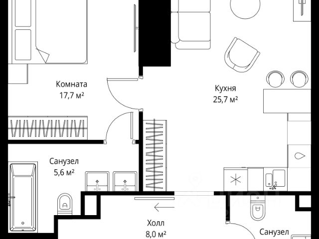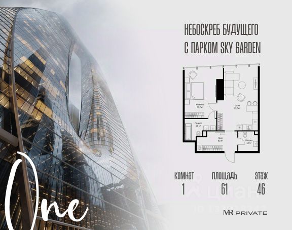 Старт продаж! Квартиры в Москва-Сити в самой инновационной башне Оне. В продаже 1-комнатная квартира площадью 40.10 м² на 55-м этаже. Новый современный жилой комплекс премиум-класса Оне расположен в самом сердце деловой жизни столицы — в Москва-Сити, где захватывающая дух архитектура встречается с безупречным уровнем комфорта. Оне находится в Пресненском районе, в пешей доступности от станции метро "Деловой центр". Проект был разработан выдающимся архитектором Сергеем Кузнецовым при участии международного бюро Gensler. Уникальная скульптурная форма башни, вдохновленная лентой Мебиуса, создает новый узнаваемый силуэт делового центра и задает непревзойденный стандарт вертикальной жизни. По замыслу архитекторов, жилой комплекс представляет собой две вертикальные башни, соединенные в нижней и верхней точках. На 85 этаже расположен Sky Garden — самый высокий в Европе парк с оазисом природы и секретным садом в облаках, а на 83 этаже парит стеклянный мост Sky Bridge с панорамными видами. Важнейшей особенностью комплекса является его всесторонняя инфраструктура по принципу All-in-Оне: закрытый Клуб с лаунжами, приватным кинотеатром, бильярдной, рабочими зонами и фитнесом. Здесь же расположена торговая галерея бутиков и премиальный гастро-кластер, концепцию которого разработал известный ресторатор Александр Сысоев. Особенности комплекса: - Эксклюзивная архитектура от главного архитектора Москвы - Самый высокий в Европе небесный сад Sky Garden на 85 этаже - Панорамное остекление от пола до потолка во всех квартирах - Smart-инженерия и сервис уровня пятизвездочного отеля - Приватная Клубная инфраструктура All-in-Оне - Трехуровневый паркинг с зарядными станциями для электрокаров - Круглосуточная безопасность и консьерж-сервис Расположение комплекса: - Пешая доступность от станции метро "Деловой центр" - 2 минуты до Экспоцентра - 5 минут до Дома Правительства - 7 минут до Кутузовского проспекта